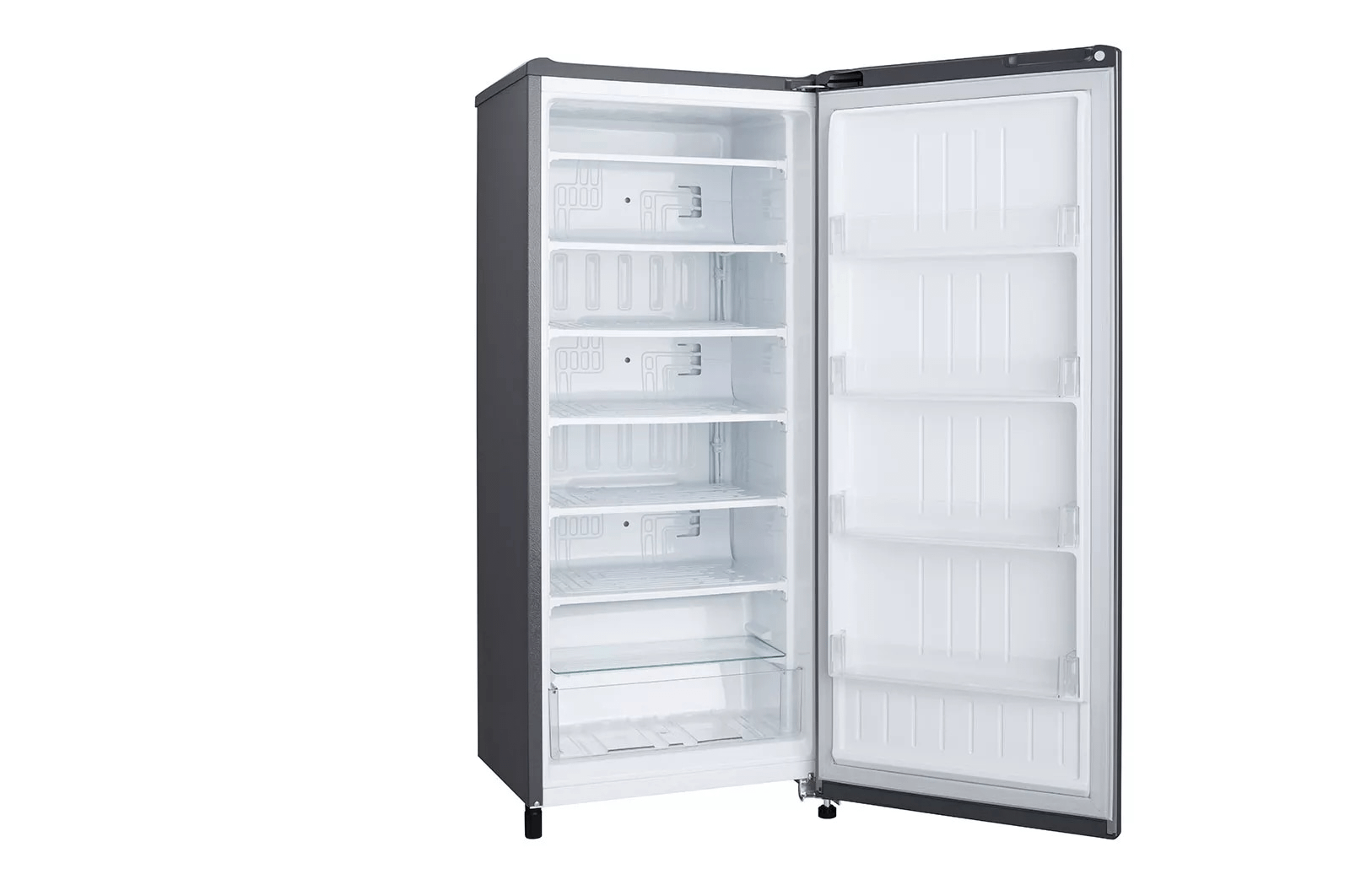- No more leaning in to a cold chest freezer - organize your food with 6 shelves within easy sight. Door baskets can be used for what you need most frequently - ice creams and family faves.