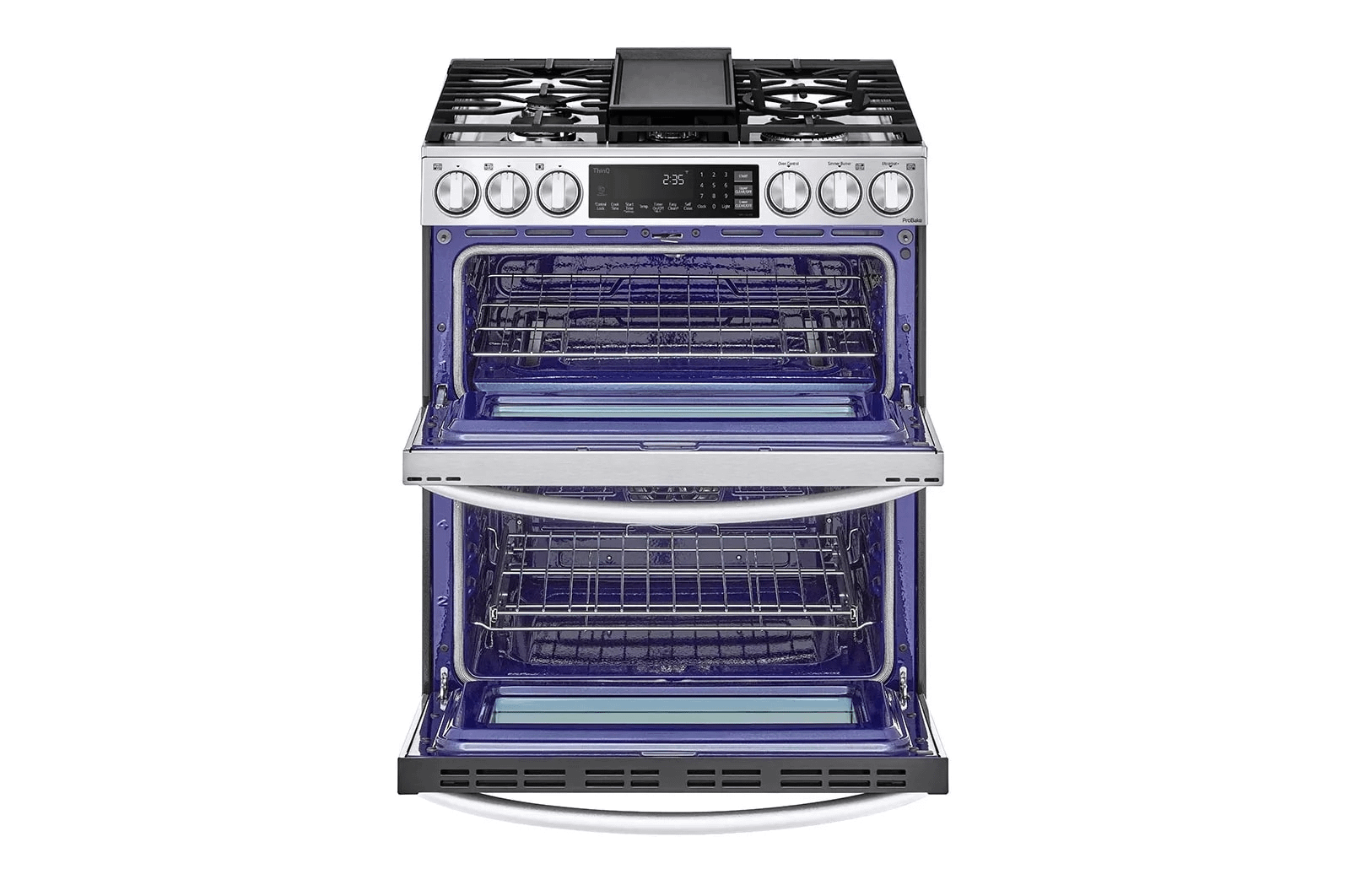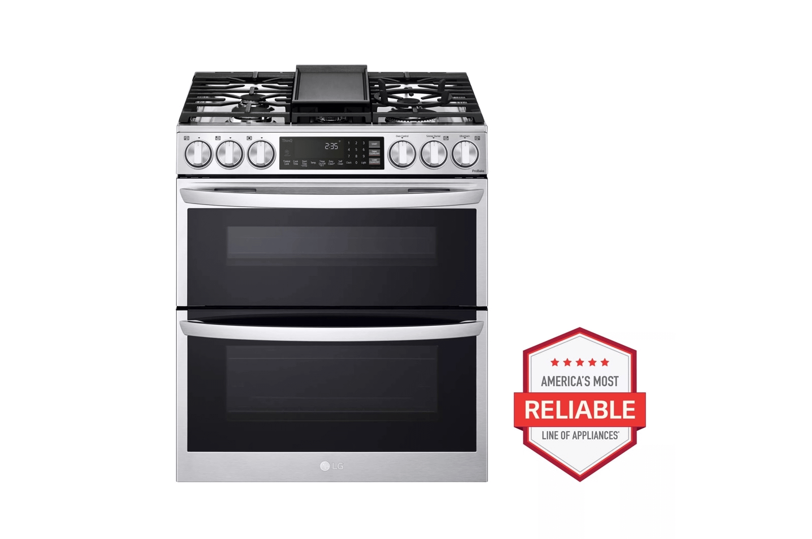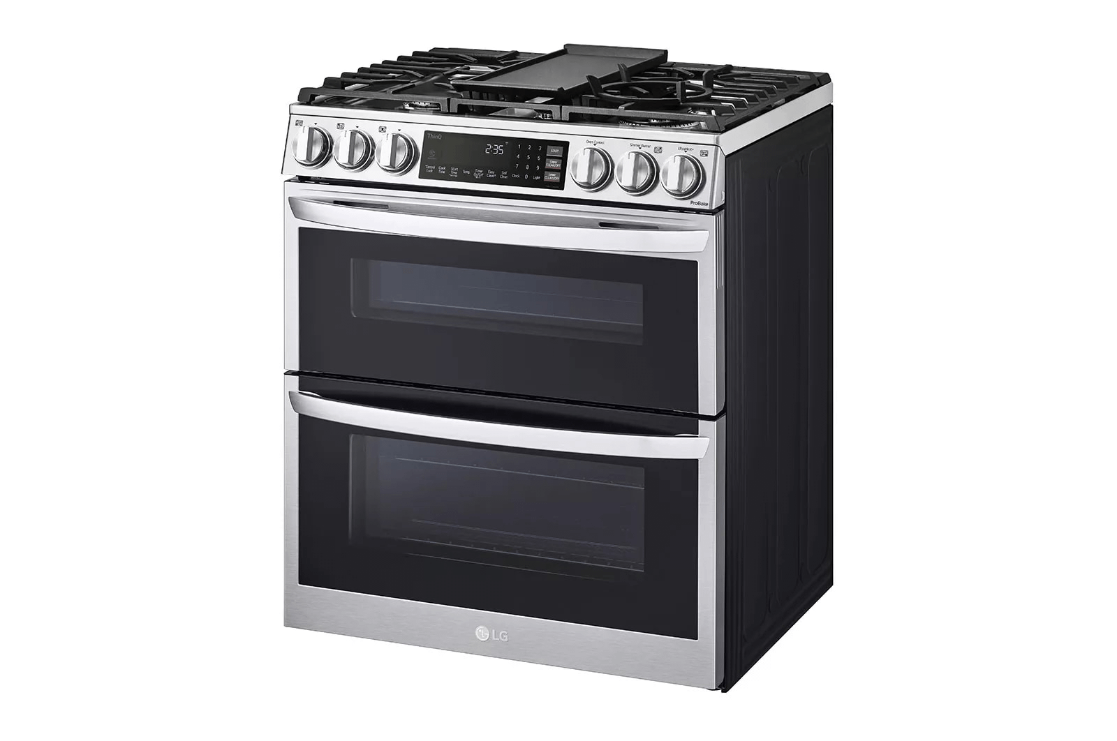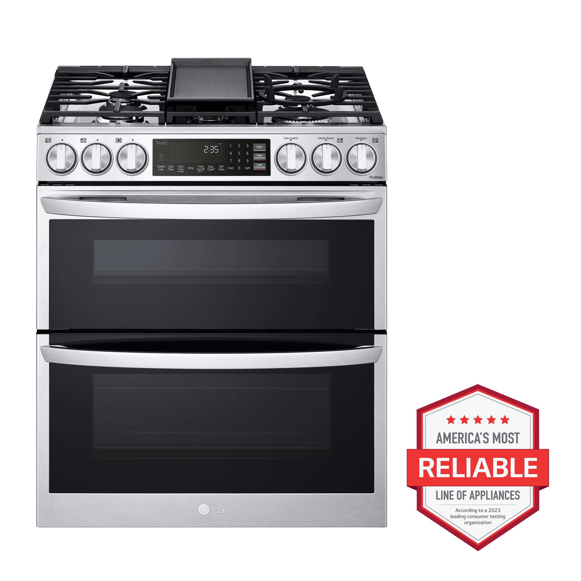 - This 7.3 cu. ft. LG range is the largest capacity oven in its class. Go ahead and use all the pots, pans, Dutch ovens and skillets you need. Whether you're baking large batches of cookies or a roast for the holidays, this oven can fit it all