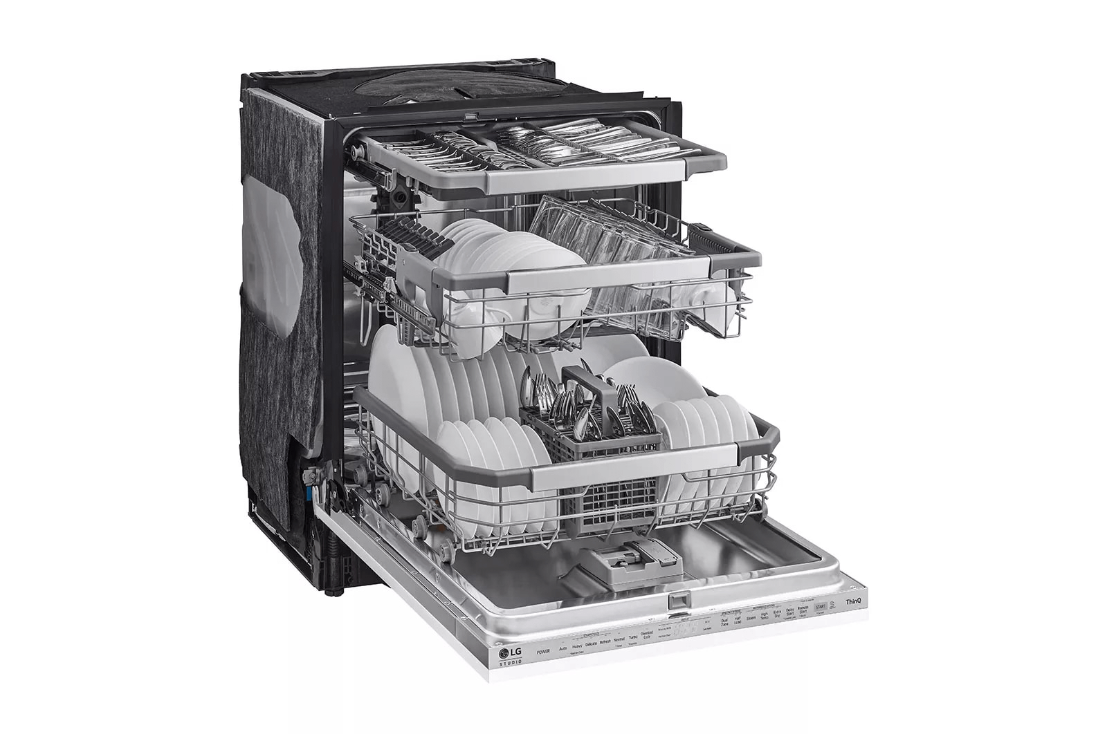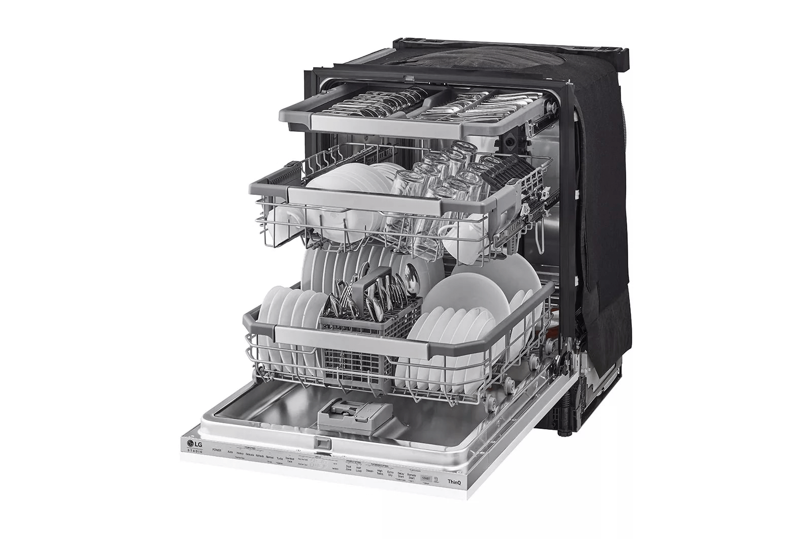 - LG's exclusive QuadWash(TM) technology gets dishes clean the first time. With four spray arms instead of just two, QuadWash(TM) uses Multi-Motion arms that rotate back and forth while spinning to power-clean dishes from multiple angles throughout the entire cycle.