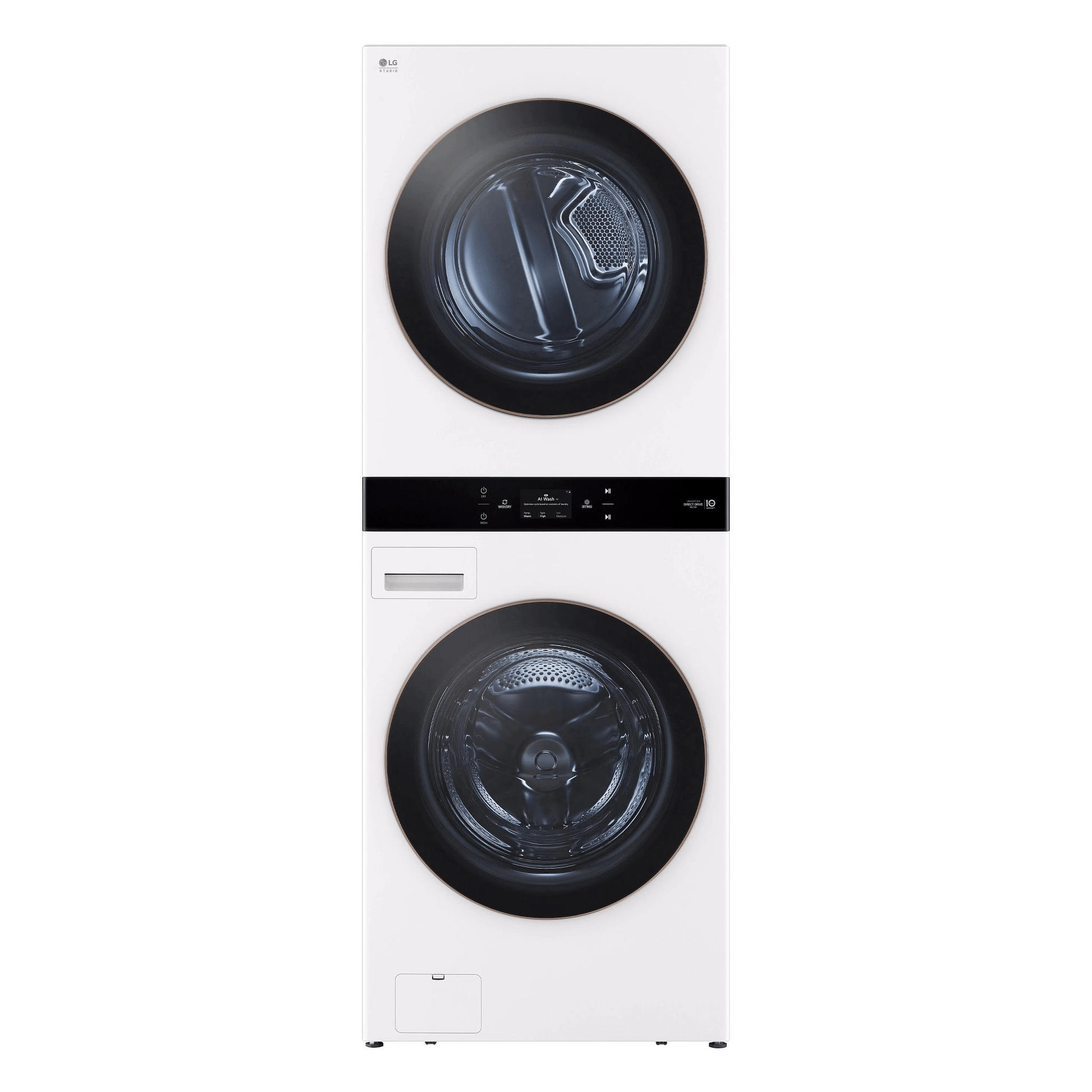 - Single Unit LG STUDIO WashTower(TM) with Center Control(R) 5.0 cu. ft. Front Load Washer and 7.4 cu. ft. Front Load Dryer with Built-In Intelligence.