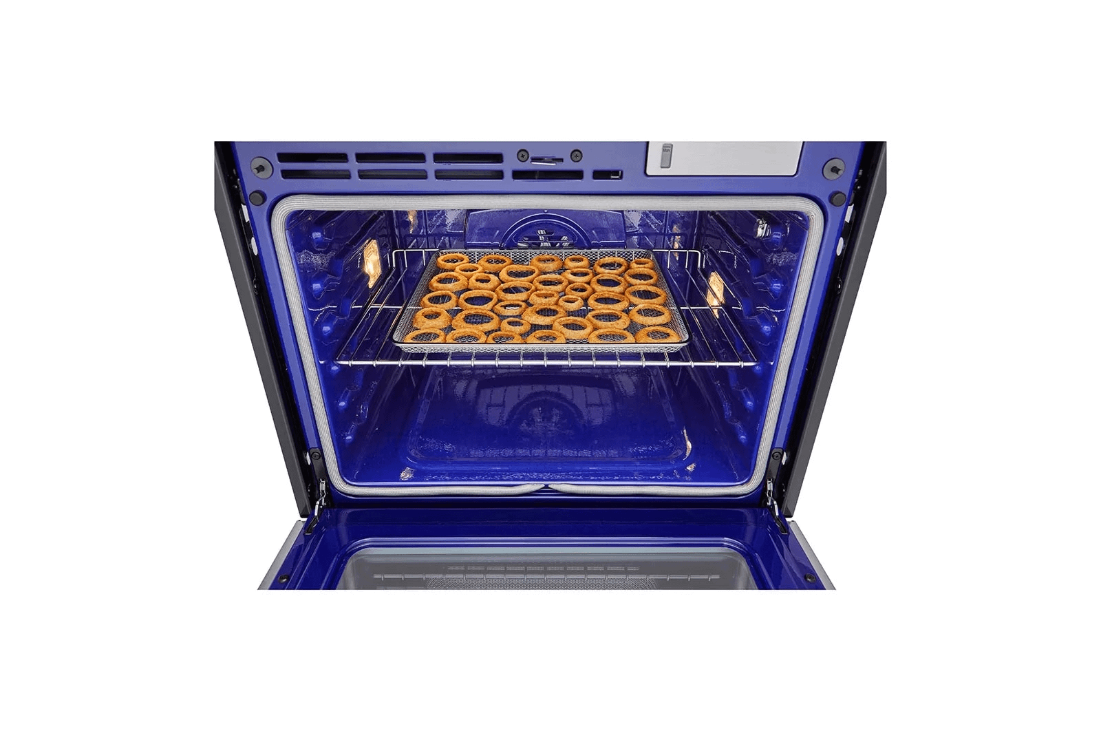 - LG's convection technology delivers the ideal temperature and hot air circulation needed for faster preheating and more even cooking on every rack.