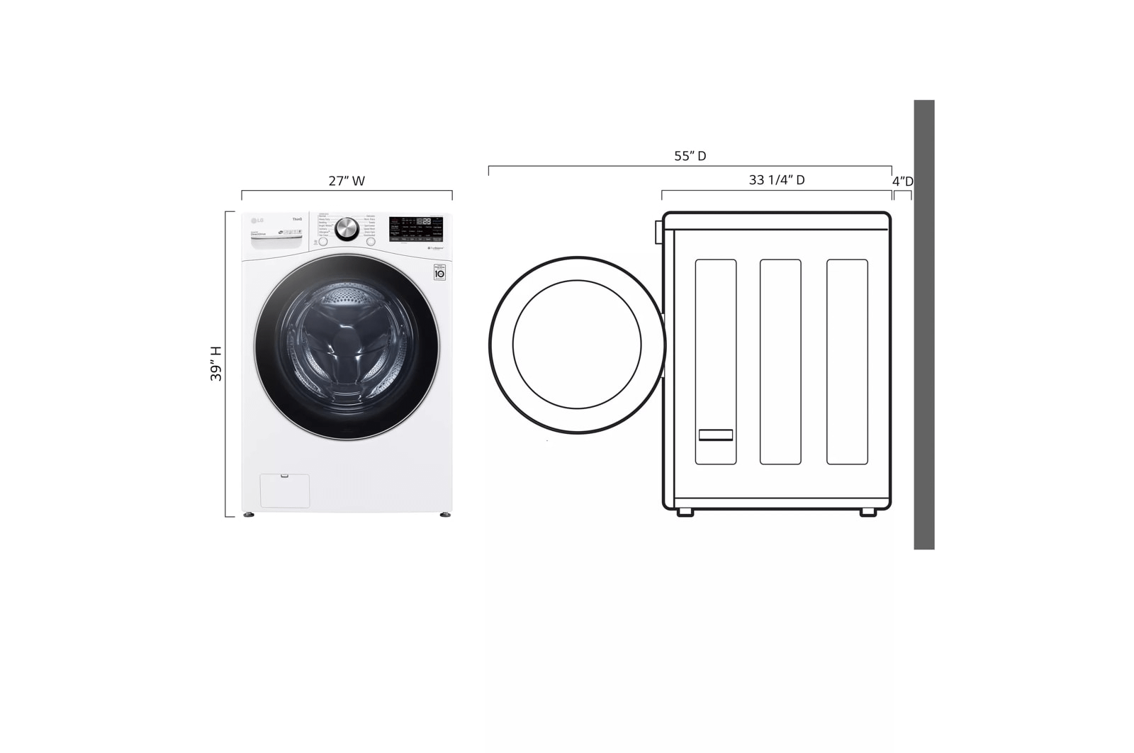 | LG Sidekick™ Pedestal Washer (WxHxD) | 27" x 14 1/8" x 30 3/4" (50 1/2 D with door open) |