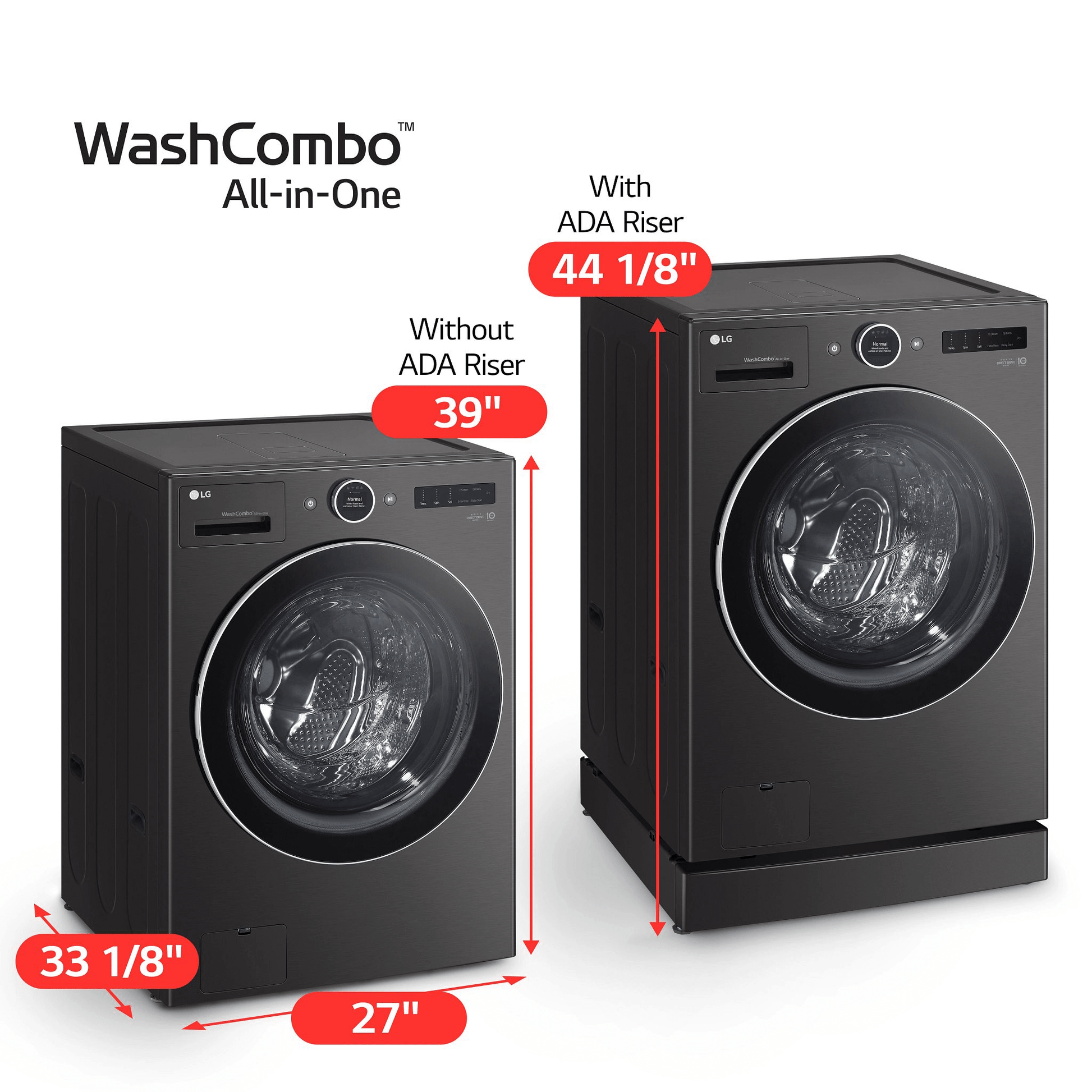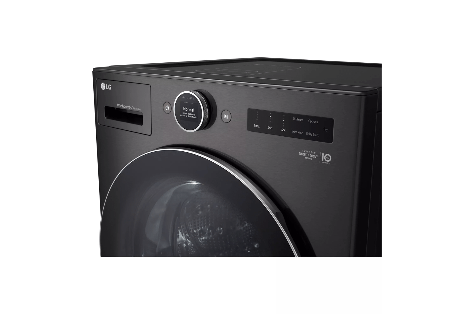 - Space-saving 2-in-1 configuration, ventless design and standard 120v plug means it can be installed virtually anywhere. No detail was overlooked in this all-in-one's sleek, modern style. Unlike the big and boxy look of other washer/dryer combo models, the LG WashCombo(TM) All-in-One flat front design, black steel finish and tinted, tempered glass door brings a premium point of view to your laundry space.