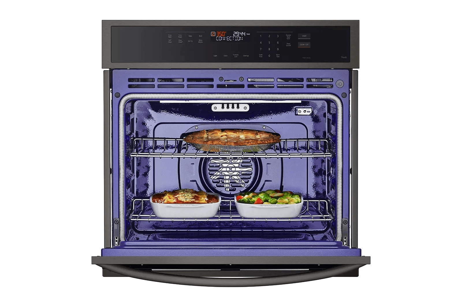 - LG's convection technology delivers the ideal temperature and hot air circulation needed for faster preheating and more even cooking on every rack.