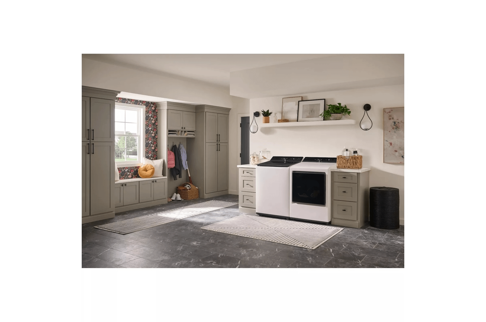- You've never seen a top load washer like this. The flat front and matte finish are a perfect contrast to the high-gloss sheen of the full-width glass lid. Sleek electronic controls with LED display make it easy to get laundry day dialed in. With style that's right at home in 1st or 2nd floor locations, the SlamProof(TM) lid is a must-have for gentle, smooth and quiet closing, every time.