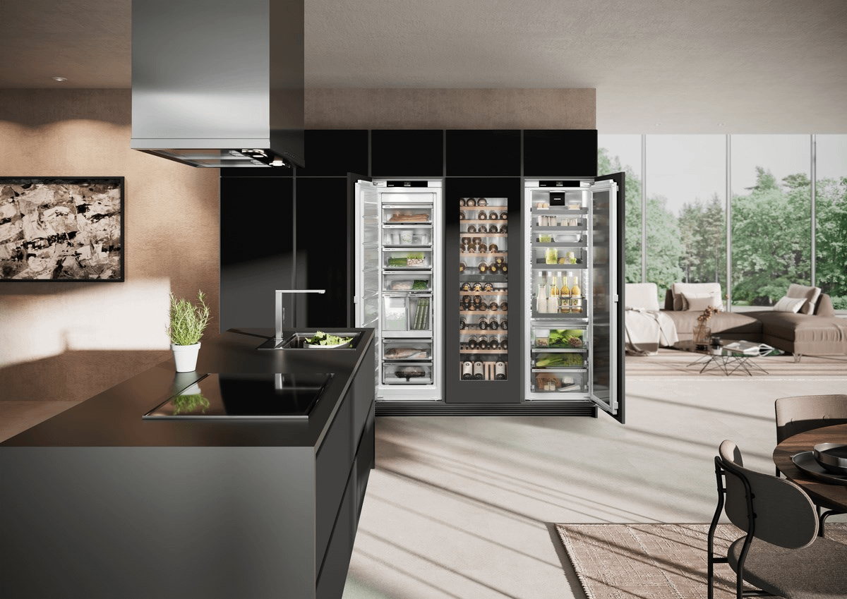 Inspired by refrigerated display cases in fine delicatessens, the OpenStage concept elegantly showcases your food. Thanks to the transparent glass drawers you can have everything perfectly displayed. The different heights make it easy to store food of different sizes. In the bottom OpenStage drawer, practical dividers ensure bottles are held securely in place.