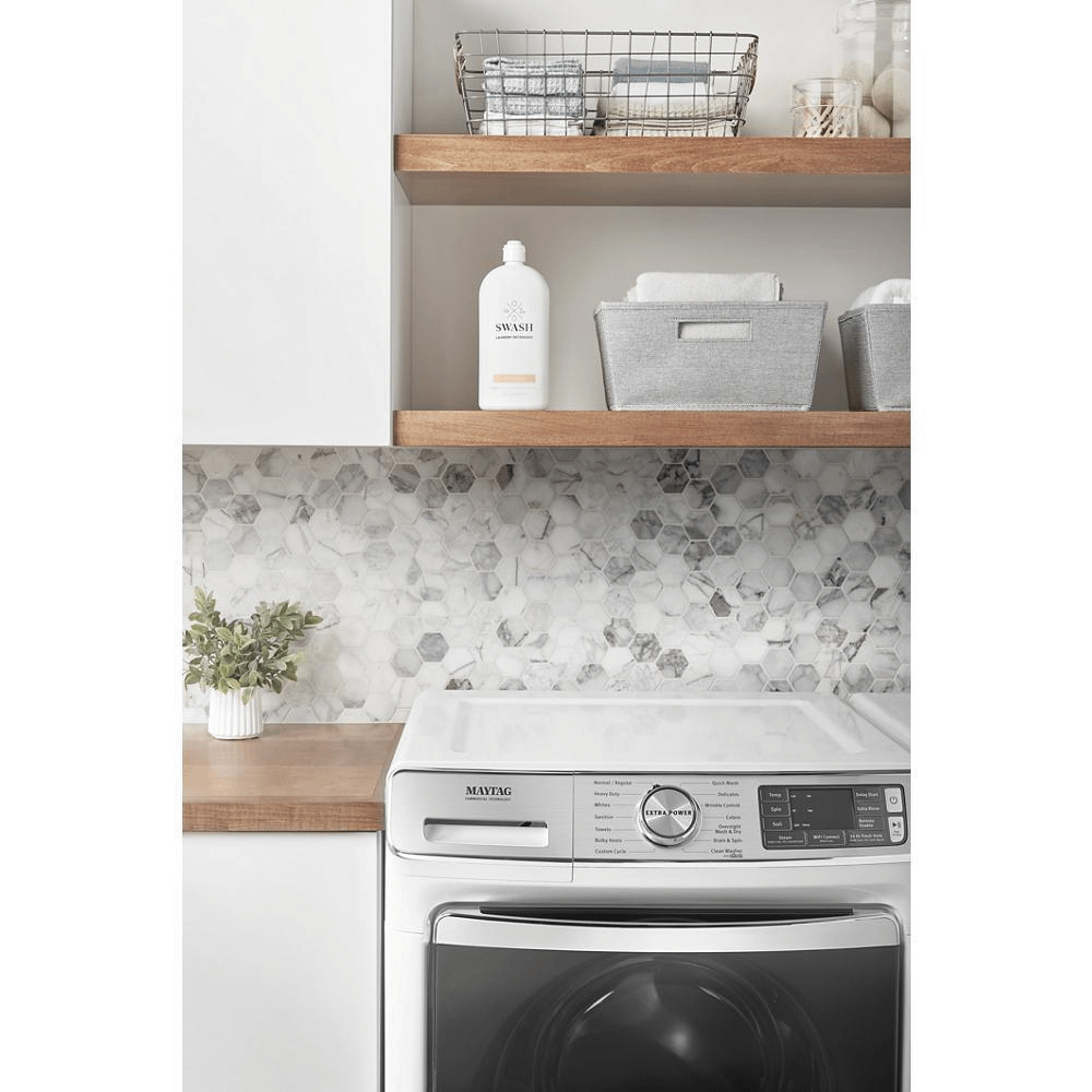 Get the heavy duty washing machine that delivers powerful cleaning you can depend on backed by the Extra Power button that boosts stain-fighting performance on any wash cycle with a dual-temperature wash. With the push of a button, Maytag fights stains that dissolve best in hot water and in cold-all in a single load. For the first time on a Maytag® appliance, monitor and control your appliance when you re away from home.* Receive notifications and alerts that help you manage laundry, avoid unnecessary service calls, maintain your smart washer and help ensure dependable performance, year after year. The 24-Hr Fresh Hold® option keeps clean clothes smelling fresh in the washer with an internal fan and intermittent tumbling that circulate air through clothes for up to 24 hours after the wash cycle ends.