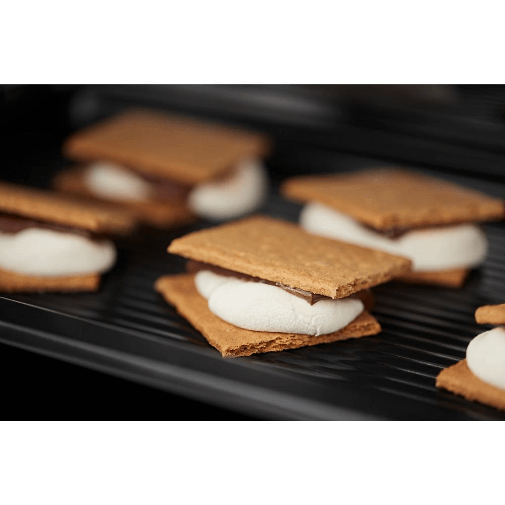 - Toast, bake or broil on any rack position with the dishwasher-safe toast pan.