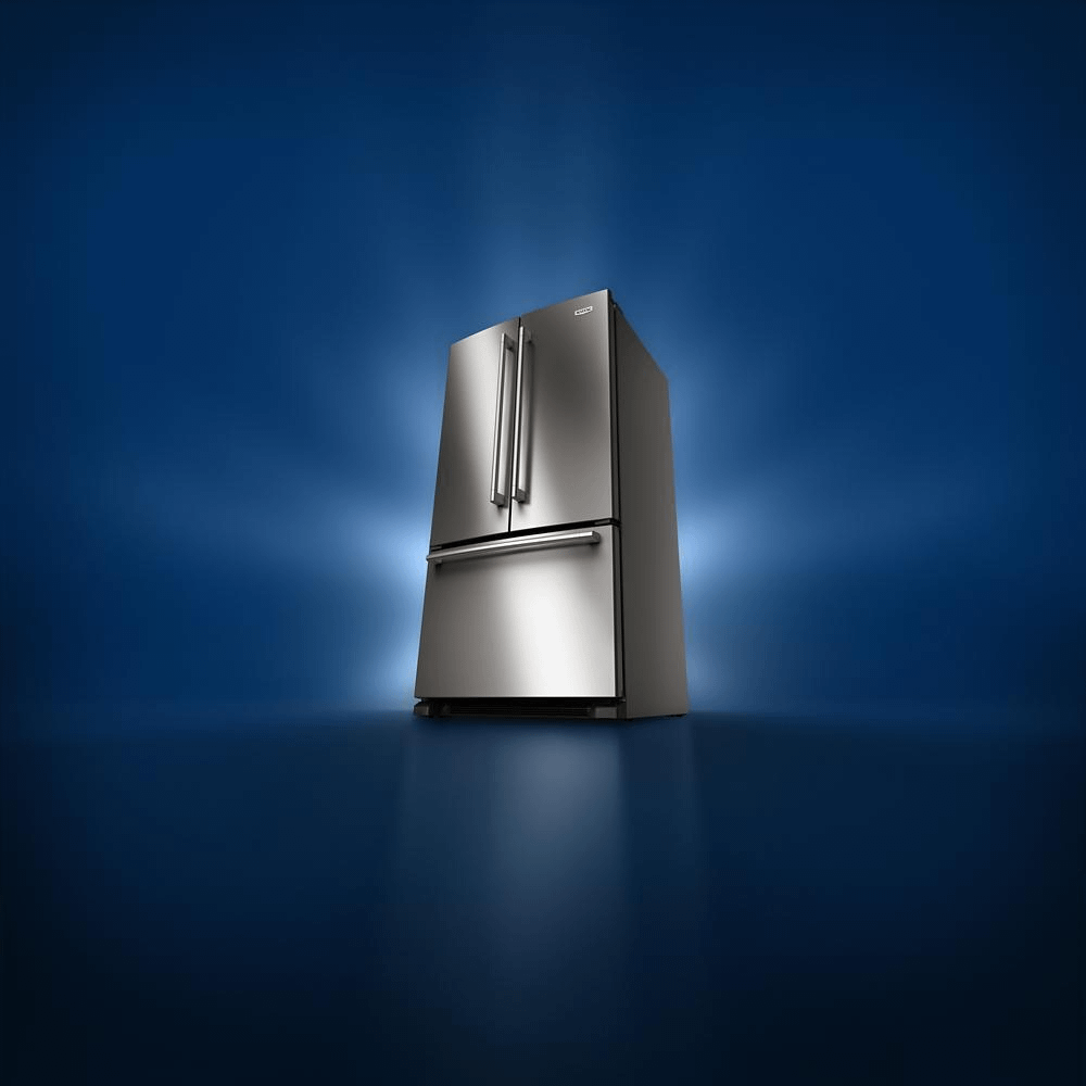 Get a performance powerhouse in the kitchen with the Maytag® French Door Bottom Mount Refrigerator. This 36 inch refrigerator has a fingerprint resistant stainless steel finish on the outside, and the Max Cool Setting on the inside, which turns the temp to the coldest level for 24 hours with the touch of a button.
