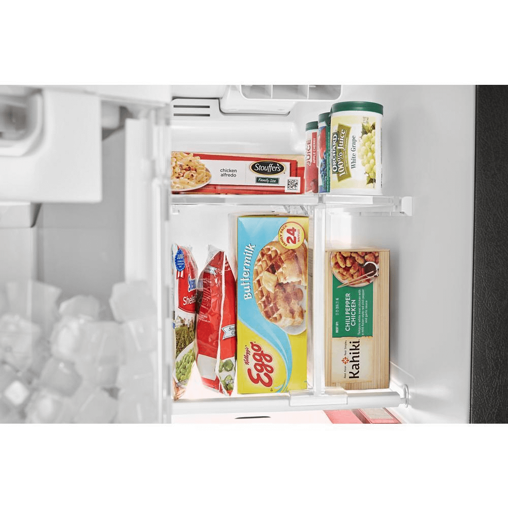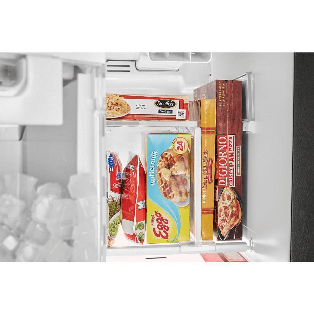 This side-by-side refrigerator is built tough and easy-to-clean with its fingerprint resistant stainless steel finish. Built with plenty of storage options, including a specially designed soft freeze bin that puts you in control of the way foods freeze. Put in a pint of ice cream and it's soft enough to scoop. Frozen pizza storage stores two frozen pizza boxes upright and out of the way, so quick meals are an easy grab. The distinct and durable Signature Maytag® metal shelf adds a bold look to the inside. With an exterior ice and water dispenser for easy access, plus a 10-year limited parts warranty on the compressor, this side-by-side fridge will keep it all cool for years and years.