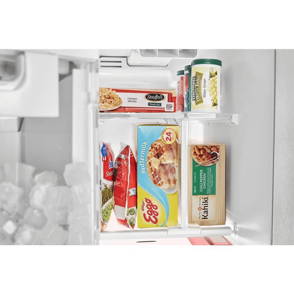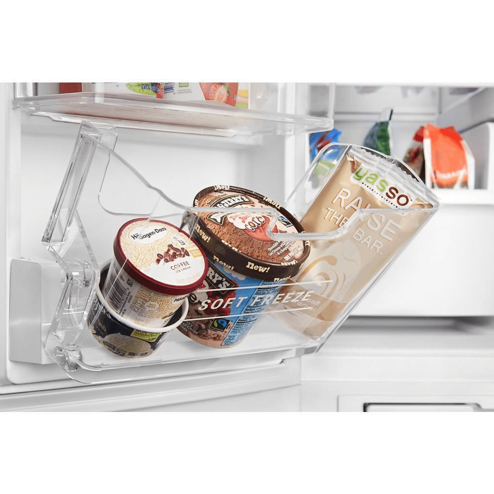 - The Store-N-Door(R) ice dispensing system frees up shelf space in the freezer, creating more room for tall items on the shelf. Plus, the bin is removable, so it's perfect to use for filling large containers like blenders and coolers.