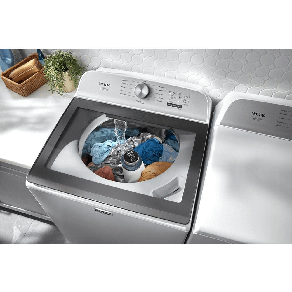 Get a clean you can see with the Maytag® Pet Pro top load washer. This washing machine for pet hair removes 5x more pet hair* with the Pet Pro Filter. Spot treat, rinse or soak clothes with this washer with a built-in faucet and get more water when you want it with the Deep Fill option. *Comparing Normal cycle with Pet Pro Filter and option to cycle using traditional agitator without Pet Pro Filter and option. Results will vary based on fabric and type of pet hair.