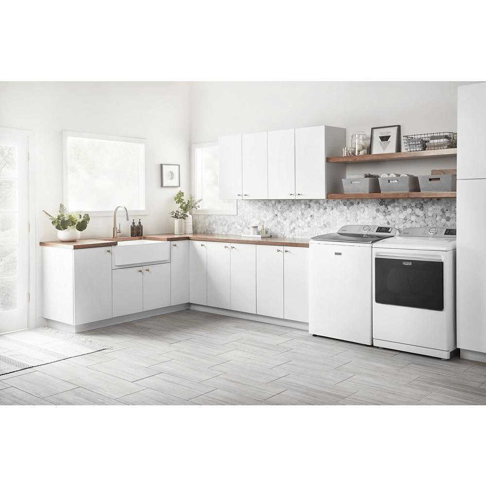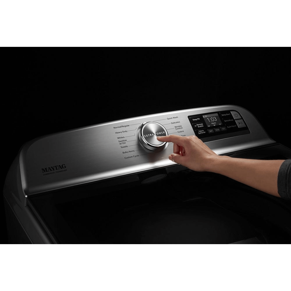 With every laundry cycle, Maytag delivers powerful cleaning you can depend on with the Power™ agitator. Use Extra Power for boosted stain fighting on any wash cycle. The Deep Fill option delivers more water when you want it with your choice of deeper water levels,* while the built-in water faucet delivers a quick rinse or a long soak. Plus, smart features help you stay in control and efficiently manage laundry from anywhere.** Use the Maytag™ app to remotely start or stop your appliance, get end of cycle notifications and troubleshoot select issues. *Bulky items cycle only available with deepest water level. **Appliance must be set to remote enable. WiFi & App required. Features subject to change. Details & privacy info at maytag.com/connect.
