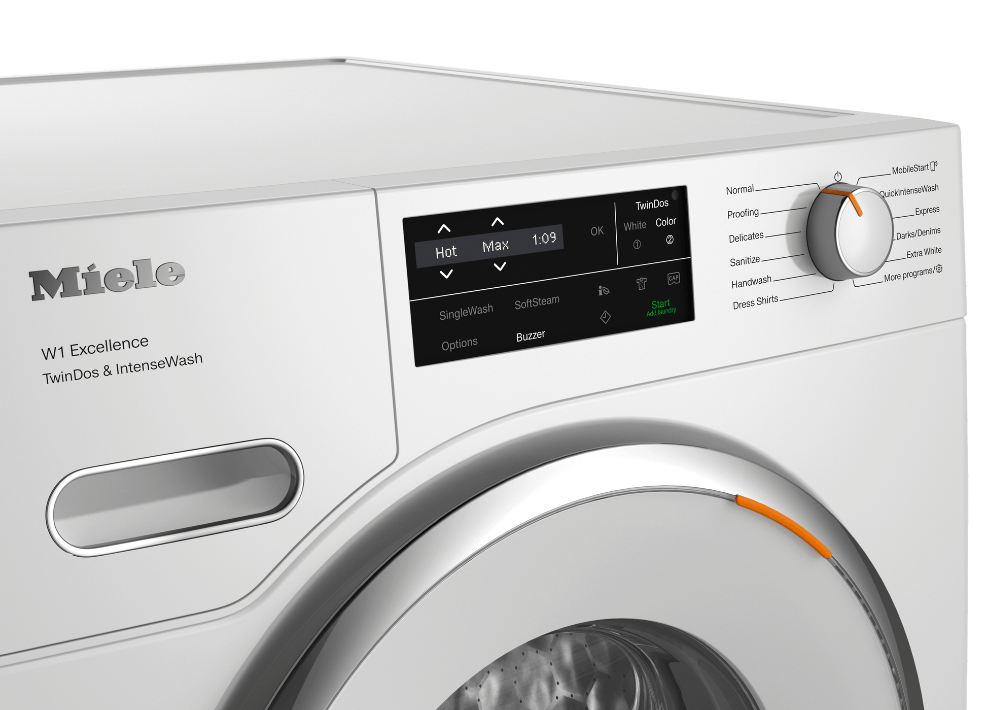 WXI860 WCS TDos & IntenseWash - W1 front-loading washing machine: With TwinDos, IntenseWash, and Miele@home for ultimate cleanliness and comfort.