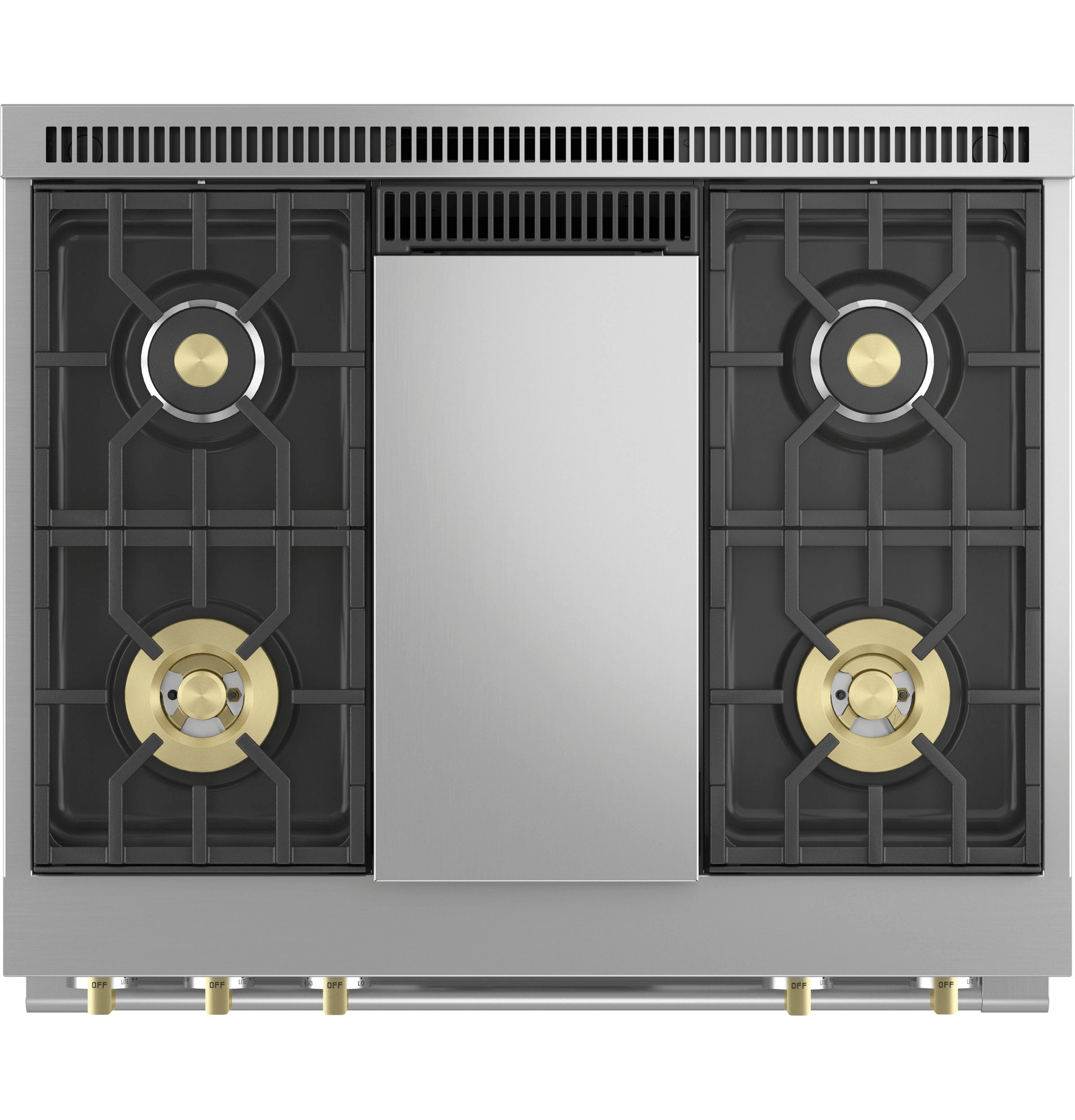 With an unmatched attention to detail, all knobs on the new Monogram Pro ranges and range tops come with solid brass accents
