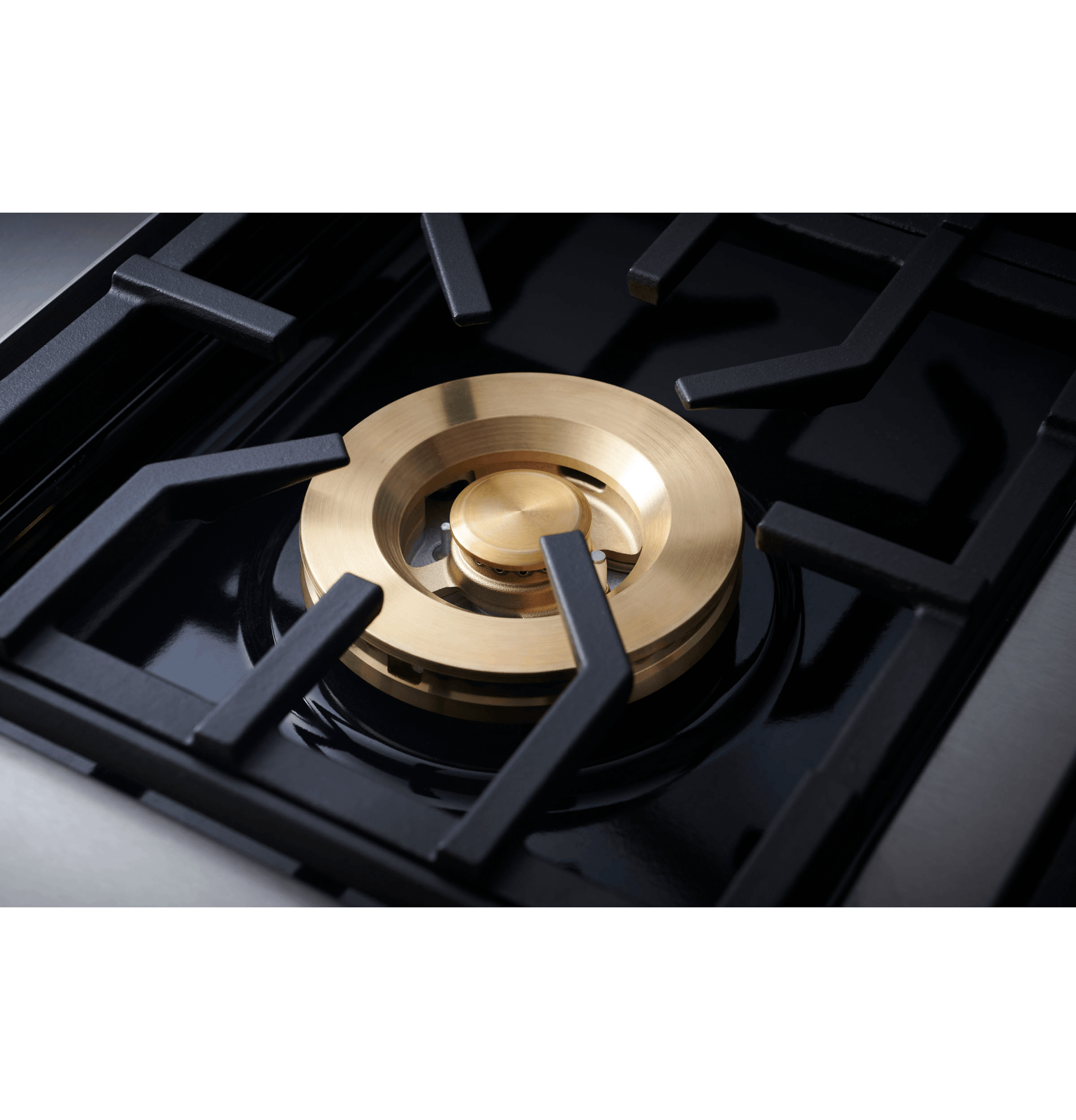 Delivering exceptional cooking flexibility, the 21,000 and 23,000-BTU multi-ring brass burners and dual-stack burners offer a range of heat settings, from gentle simmer to intense flame