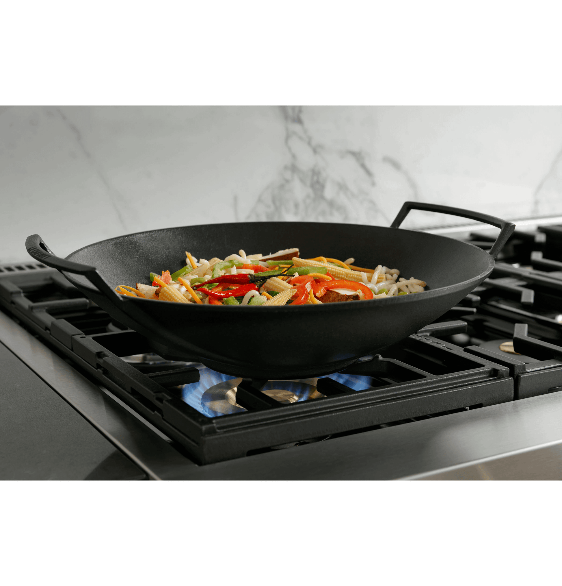 Reversible grates are easy to clean and complement different culinary techniques, with a flat side for traditional cooking and contoured side that perfectly holds round-bottom woks