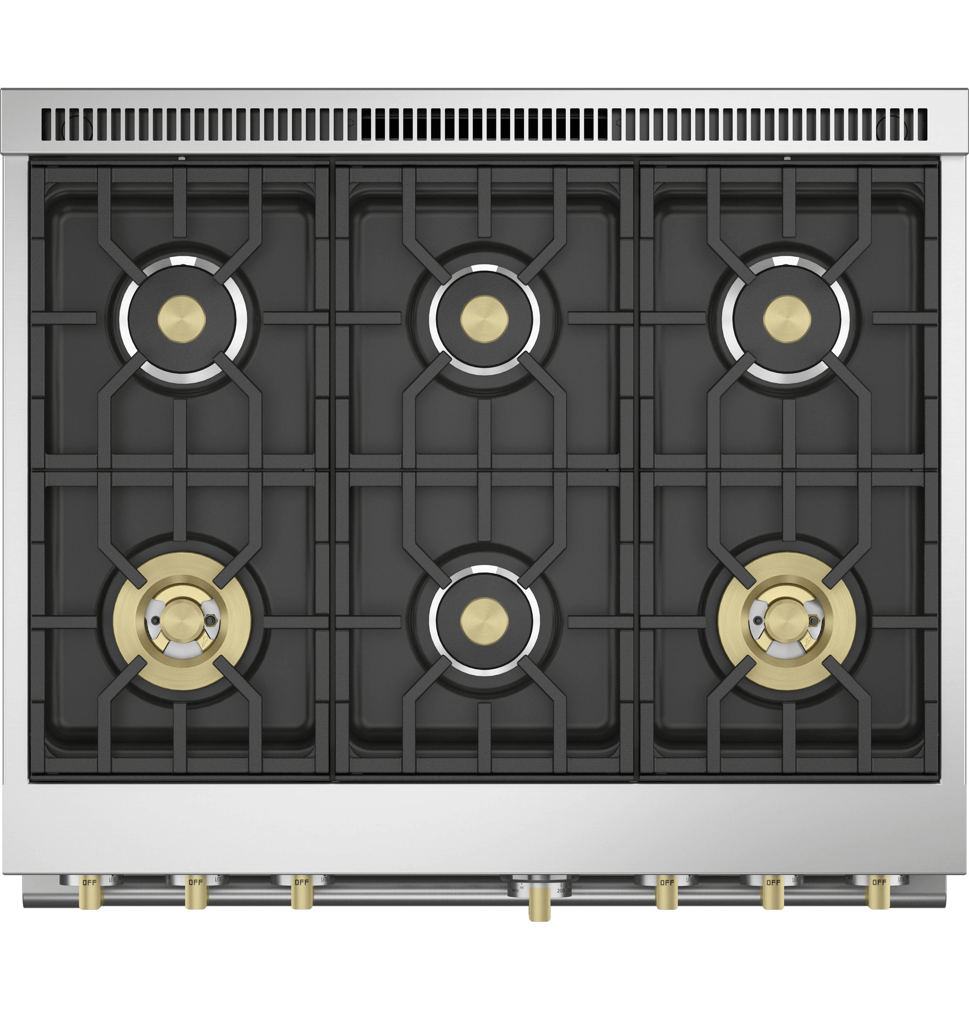 With an unmatched attention to detail, all knobs on the new Monogram Pro ranges and range tops come with solid brass accents