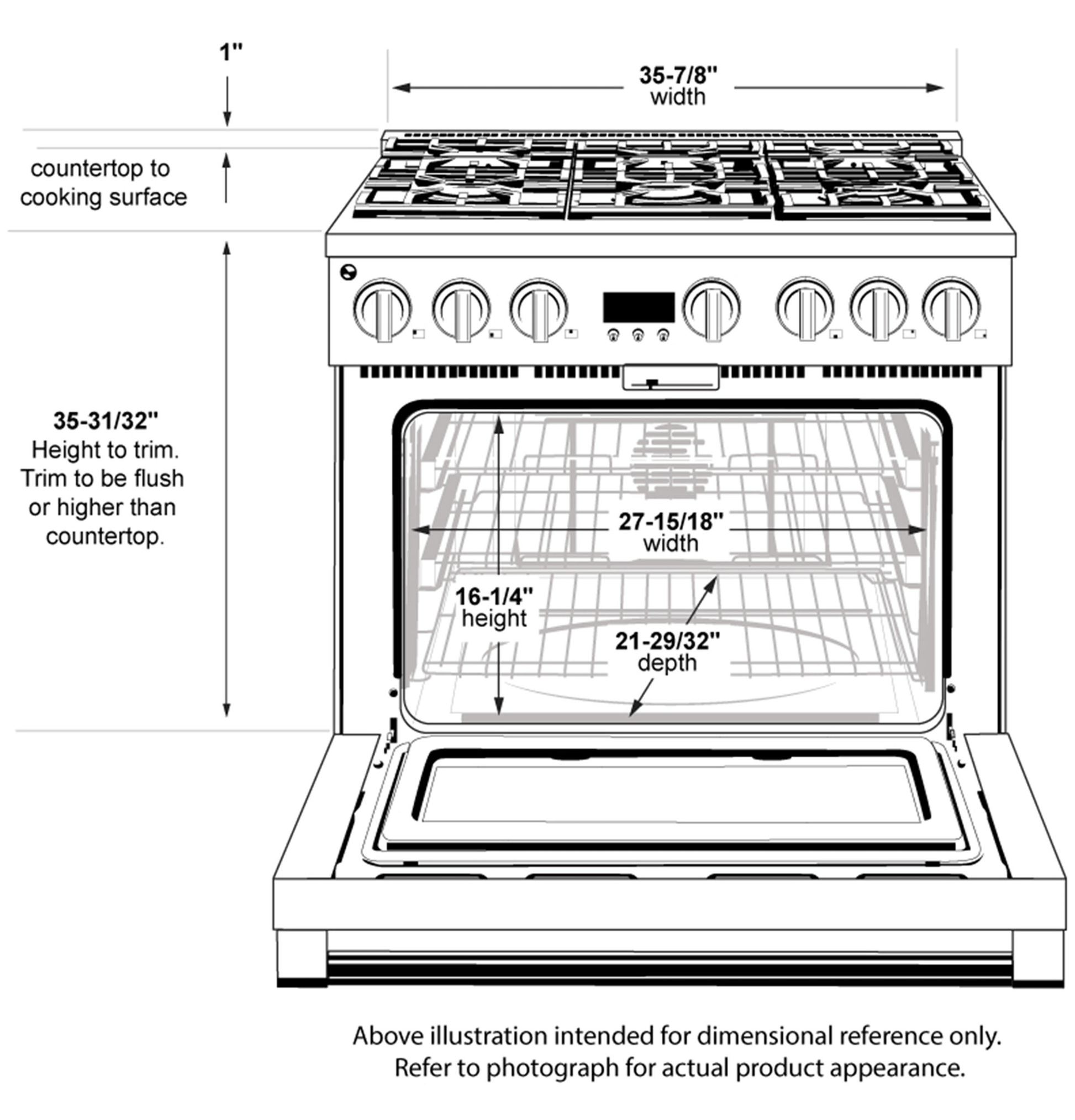 | Height to Cooking Surface (in.) | 35 1/4 to 36 3/4 |