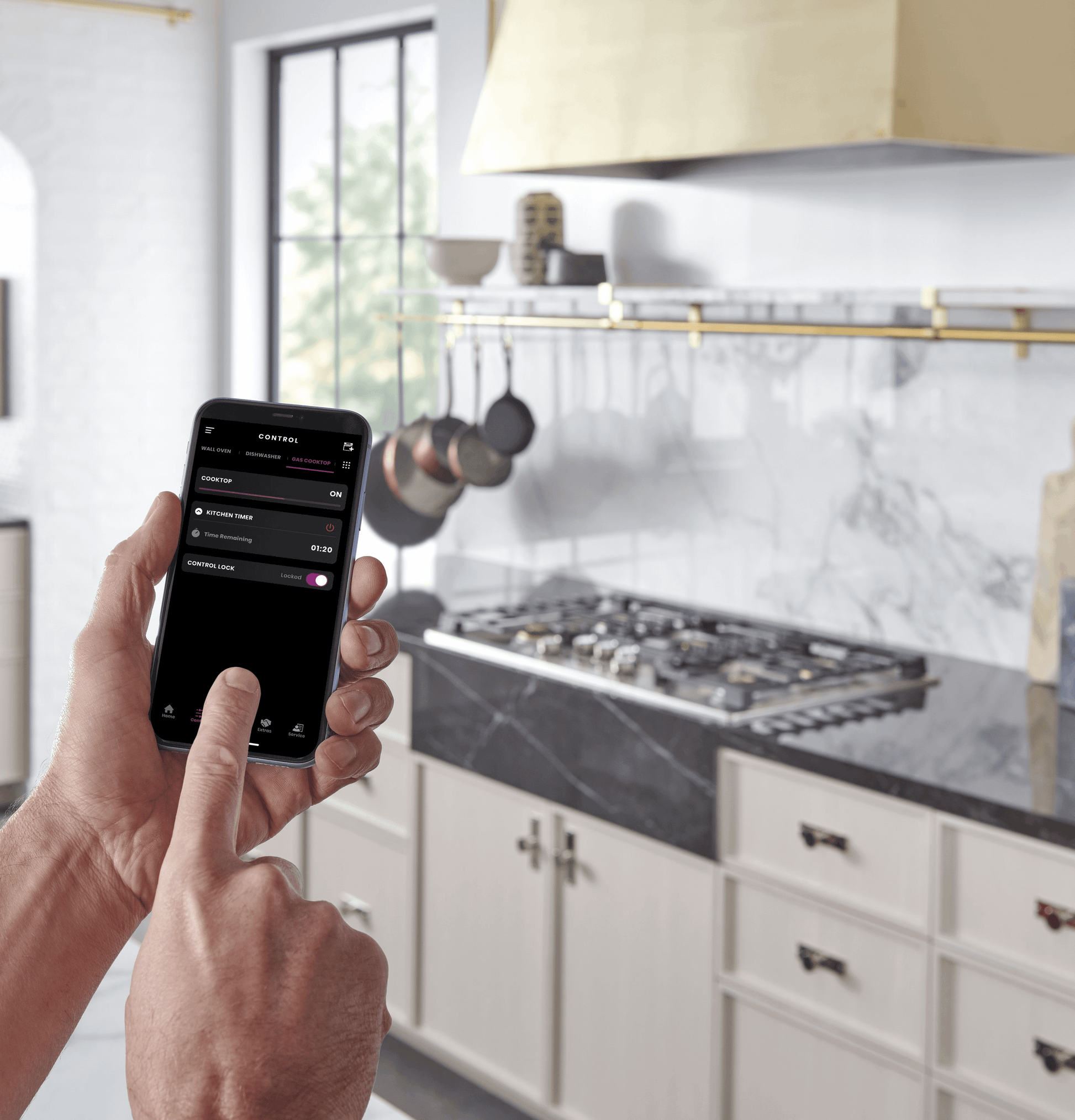 Allows you to wirelessly control gas cooktop functions from your smartphone
