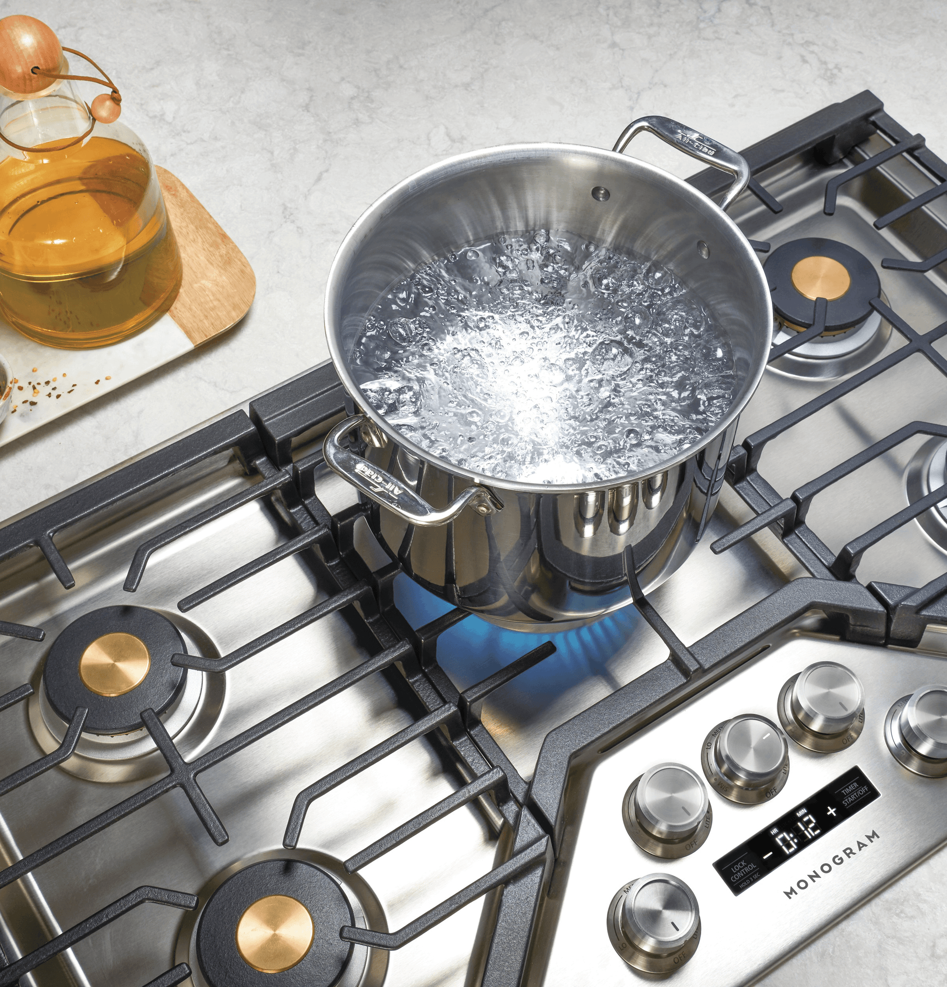 - Provide complete 140F simmer-to-rapid-boil flexibility on all burners; the burners are sealed to the cooktop for easy cleaning