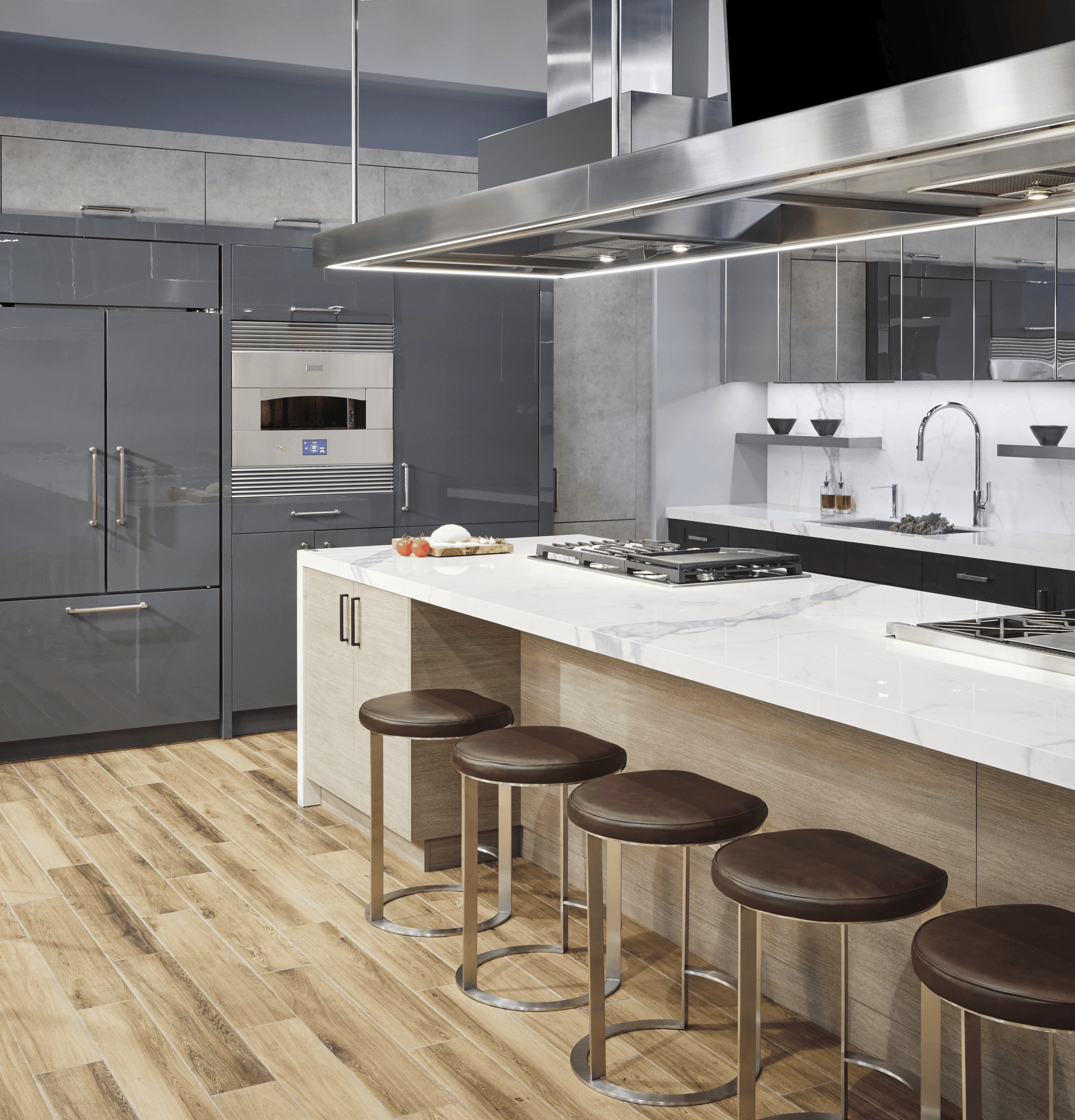 Bluetooth technology pairs your Monogram gas cooktop and hood for proper cooking ventilation