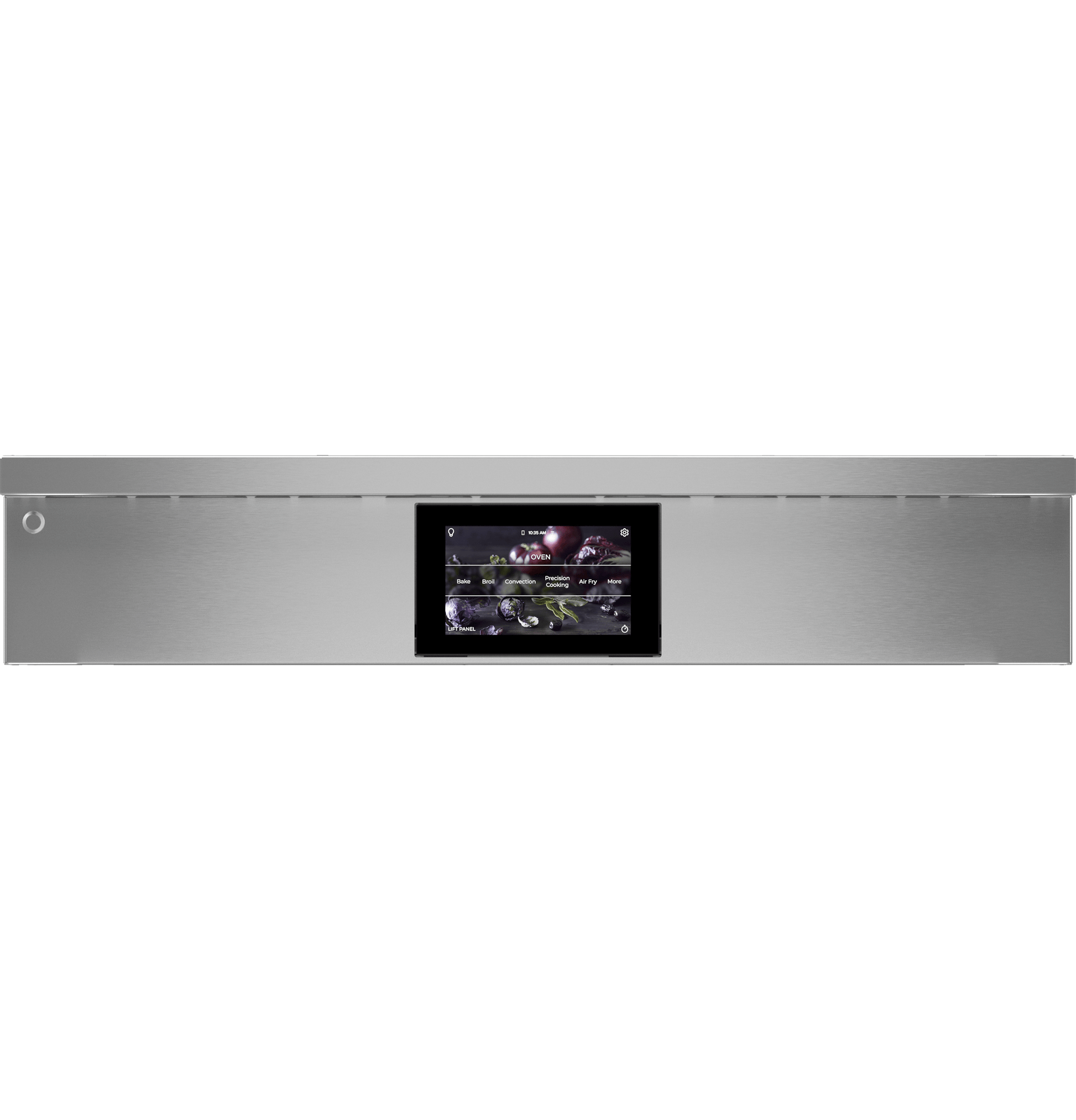 With a delicate touch, the articulating LCD screen swings out toward the user for an ergonomic experience before returning flush with the oven control panel when it is not in use.