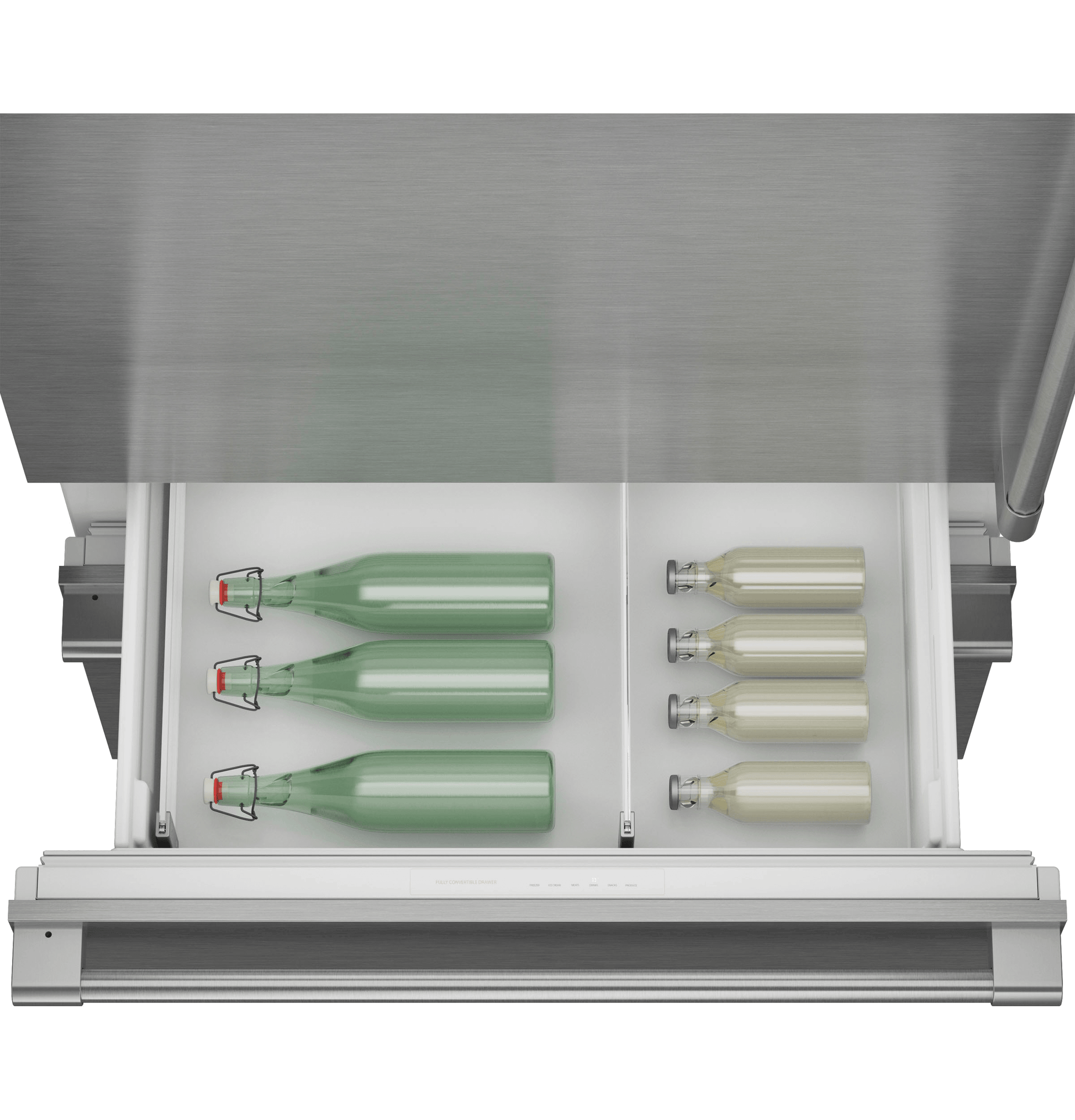| Fresh Food Cabinet Drawers | 2 Half-Width Adjustable Humidity Drawers Full-Extension Soft-Close Slides |