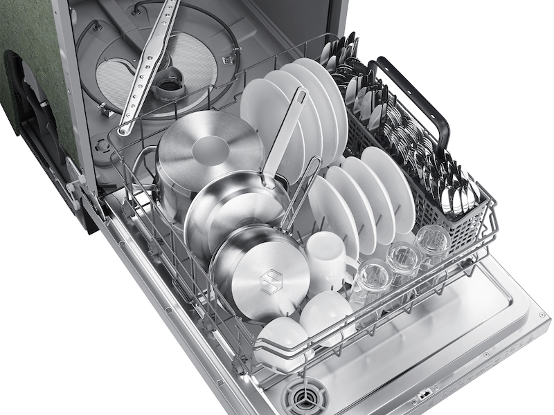 - Height-adjustable upper rack makes it easy to accommodate various dishware shapes and sizes.