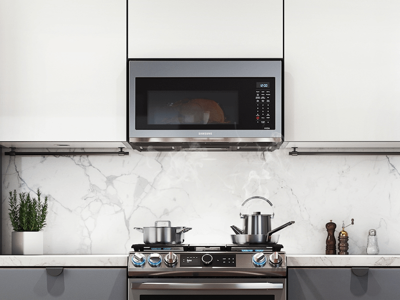 - Conveniently synch your Over-the-Range Microwave's fan and cooktop through Auto Connectivity. While the fan and cooktop are connected with a Wi-Fi enabled compatible Samsung cooktop the hood fan will automatically turn on when you turn on the cooktop.* The hood fan will also turn off automatically when you turn off the cooktop.