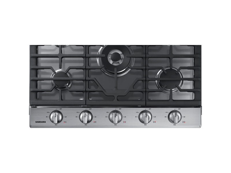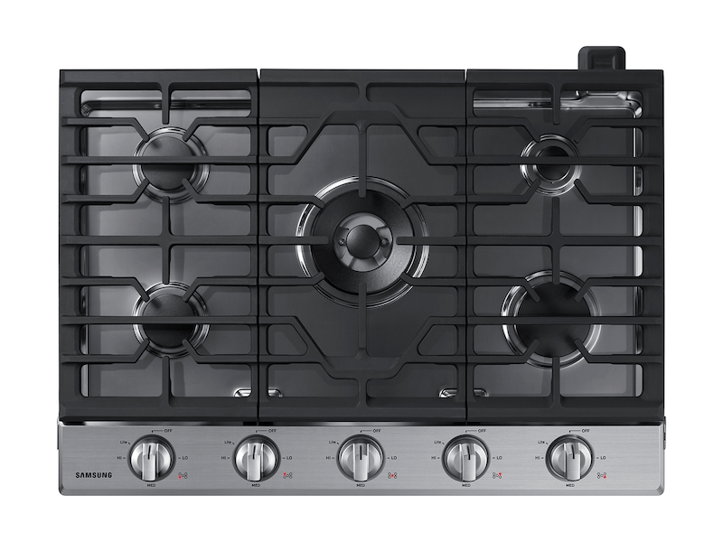 - Easily slide your pots and pans across cooktop space with three cast-iron grates that add a more premium look to your kitchen. They are also easy to pick up and clean.