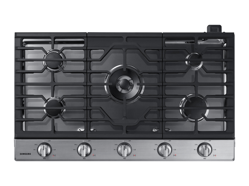 - Easily slide your pots and pans across cooktop space with three cast-iron grates that add a more premium look to your kitchen. They are also easy to pick up and clean.