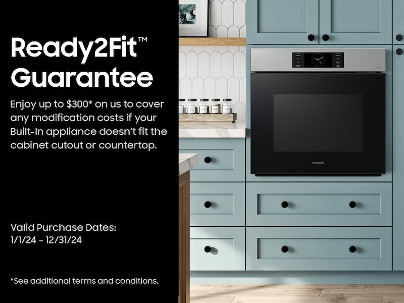 Receive up to a $300 rebate toward a cabinet cutout or countertop modification if your new qualifying Samsung 30inch or 36inch Built-In Cooktop or Wall Oven does not fit your current Cooktop or Wall Oven cutout.