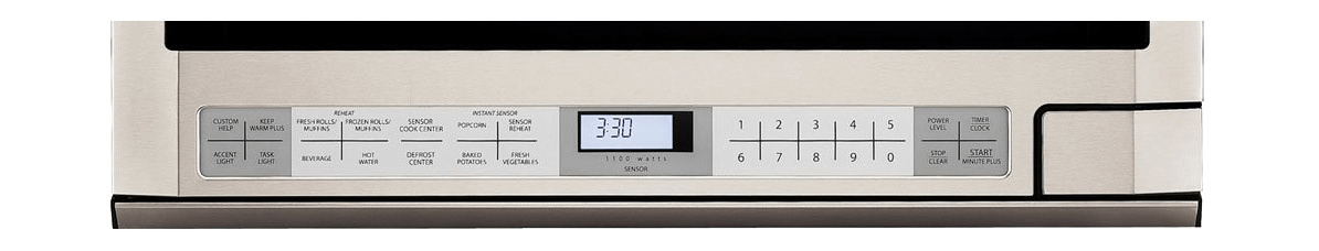 The R1214TY Over-the-Counter microwave oven from Sharp features a stylish stainless steel finish to match a modern kitchen. Its convenient Auto-Touch™ Control Panel is located behind the oven door; it's easy to reach and hidden from view. This microwave oven has clean lines, a large 1.5 cu. ft. cooking capacity, and a 14 1/8" turntable - the largest turntable of ANY microwave oven in its class. With Smart & Easy® sensor technology, cooking and reheating is a breeze! With 1000 watts of power, this microwave is as powerful as it is space-conscious!