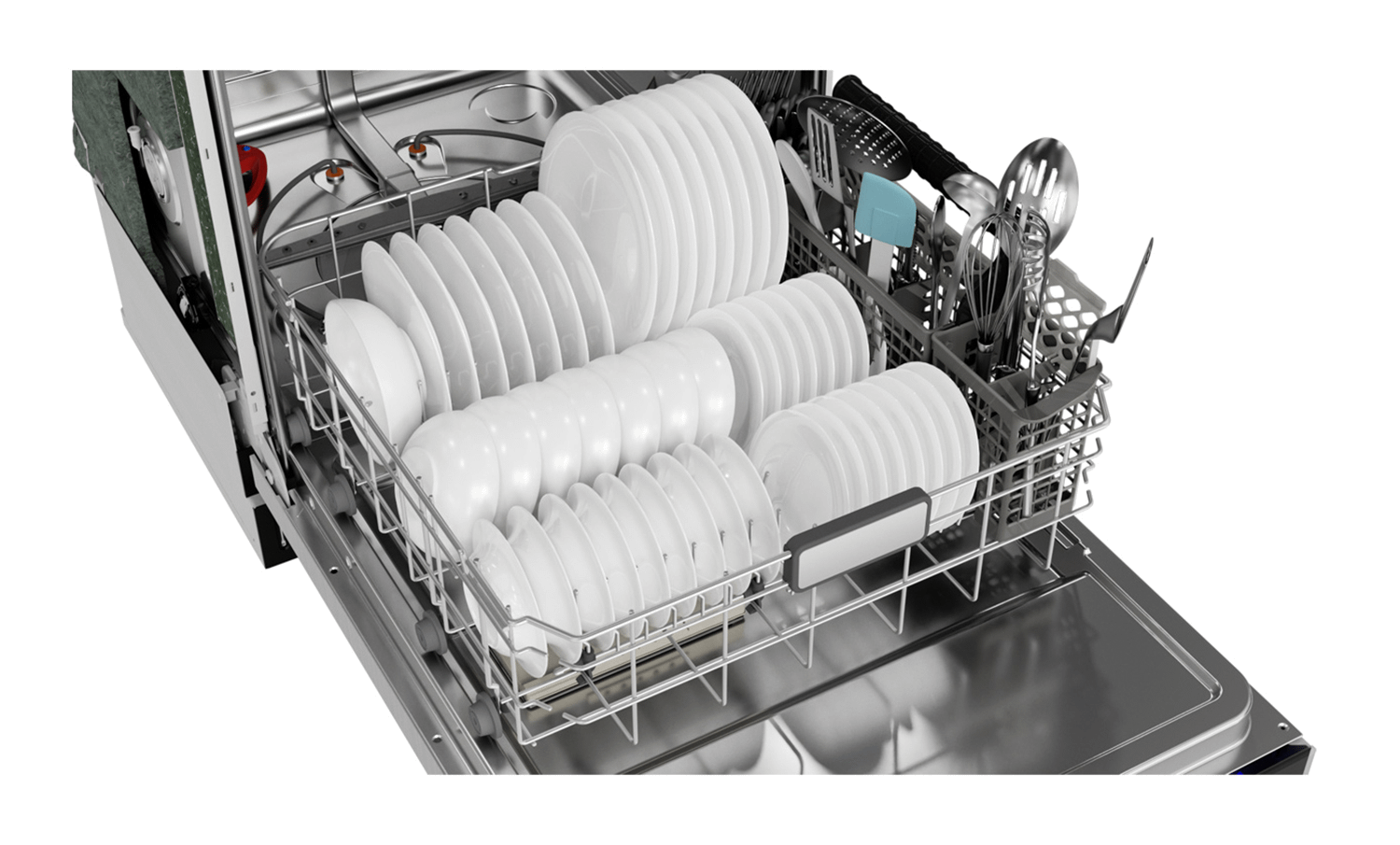 Classic and elegant, the 24-inch Sharp SDW6757ES dishwasher offers luxuries inside and out with two premium interior white LED lights. Feel the quality and strength of the premium smooth glide rails as the racks slide easily with the slightest touch. The brilliant, stainless steel finish is easy to clean and complements other stainless steel appliances, while the hidden control panel helps minimize distractions. The powerful and versatile features of this premium dishwasher give you more than peace of mind. The Sharp SDW6757ES slide-in dishwasher also gives you peace and quiet at a serene 45dB, with the Library Quiet washing cycle. Balance and Harmony. Exceptional Quality. The SDW6757ES Stainless Steel Dishwasher from Sharp.
