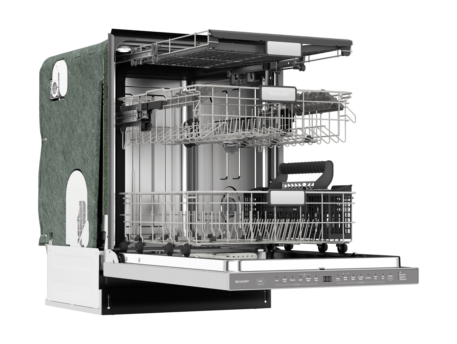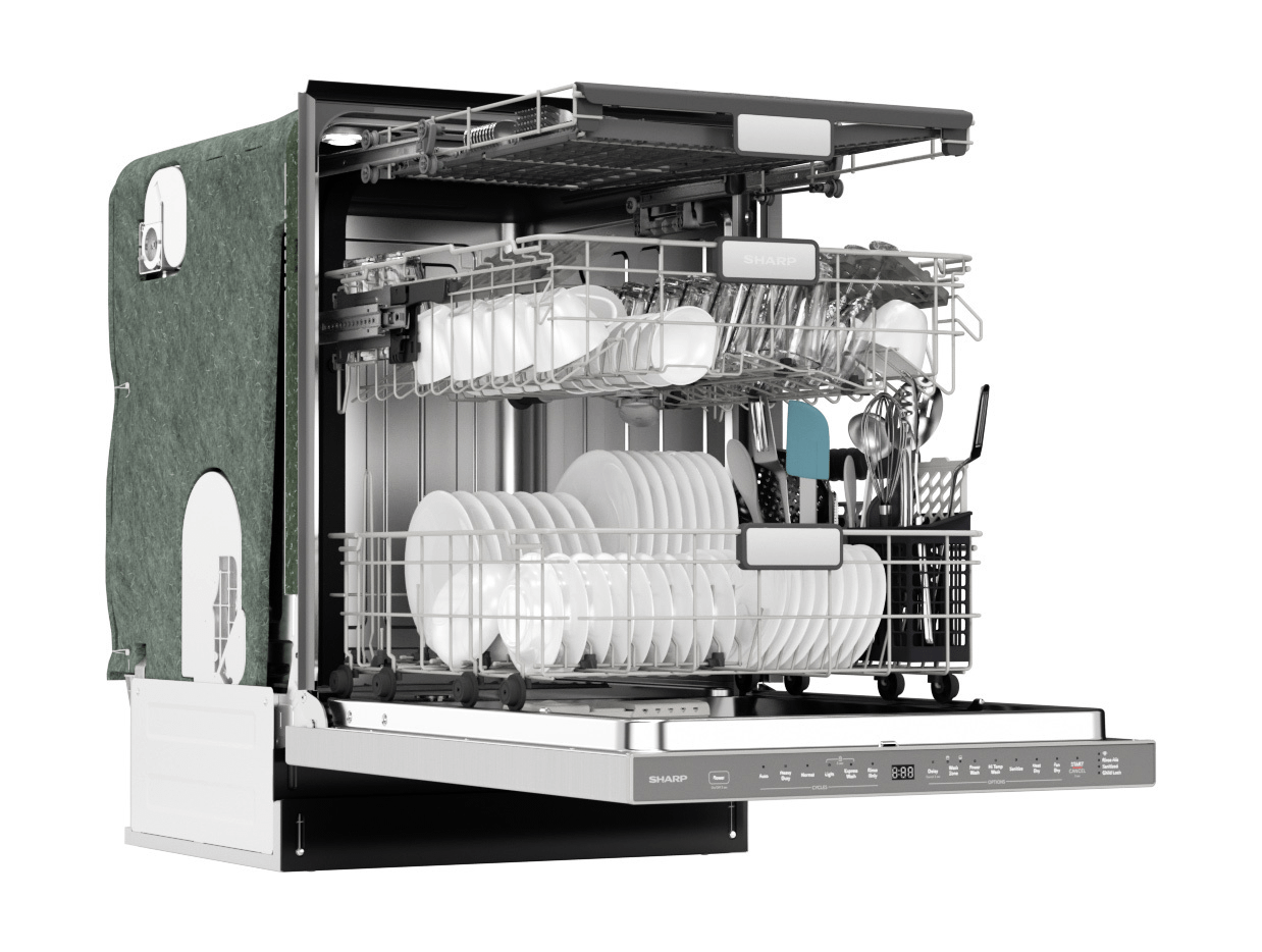 The powerful and versatile features of this premium dishwasher give you more than peace of mind. The Sharp SDW6767HS is Library Quiet at a peaceful and serene 45dBA. Balance and Harmony. Exceptional Quality. The SDW6767HS Smart Dishwasher from Sharp.