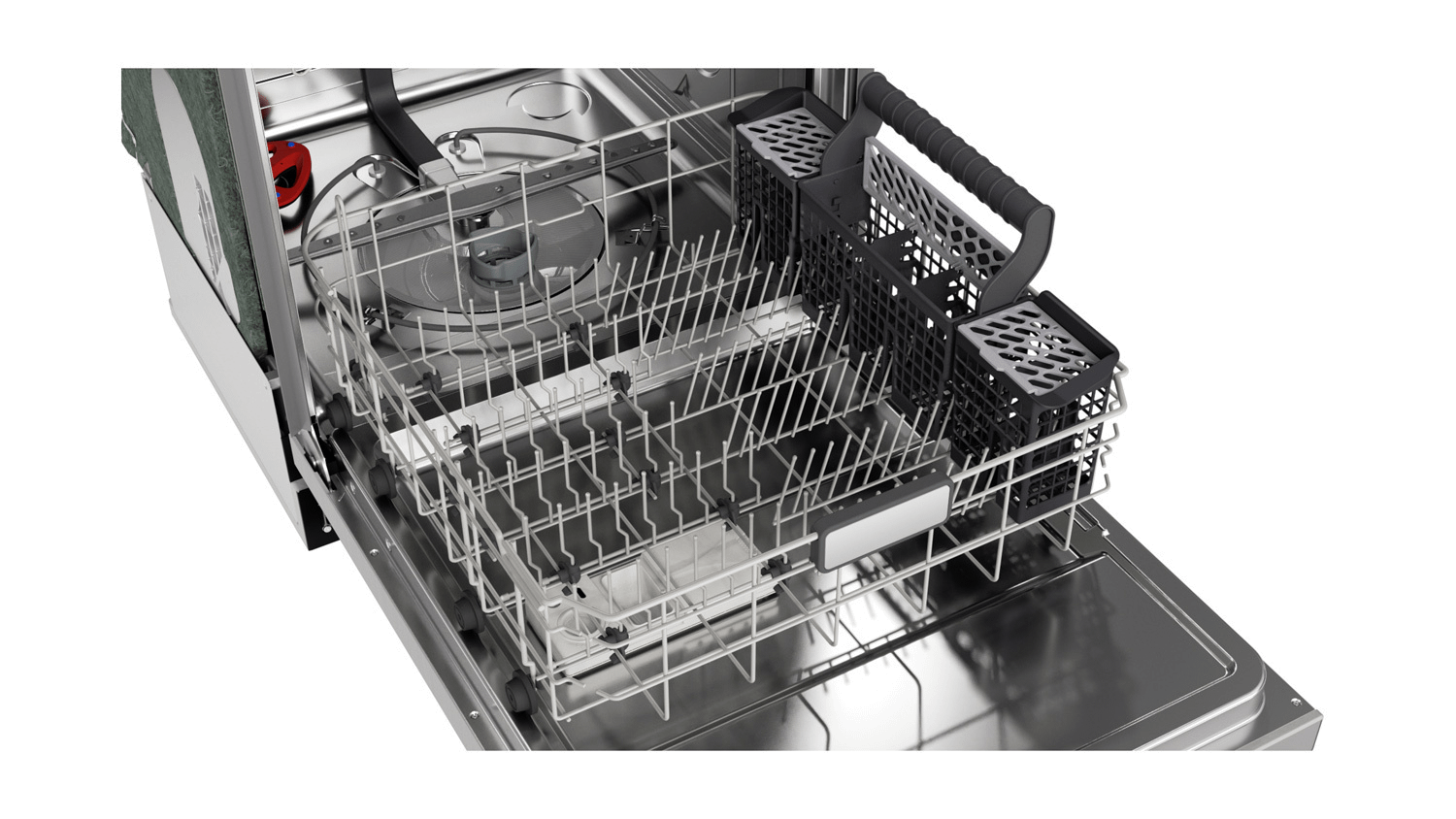 The responsive washing cycles work with smart sensors to optimize performance automatically. Place your most challenging cookware above the Power Wash sprayer for extra scrubbing power. Set the Wash Zone to clean smaller loads on either the upper or lower rack. The extended heated dry option uses a fan to efficiently circulate the air as the dishes dry.