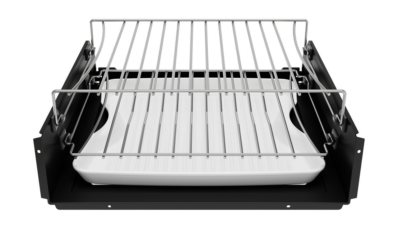 The dual convection fans and dedicated heating elements in the SMD2499FS provide turntable-free baking, roasting, grilling, and air frying. Bring a meal to the table even faster with three Speed Cook modes that mix convection and microwave heating for delicious results in less time. The included dishwasher safe, porcelain cooking dish, upper, and lower racks can be used in all modes and combined for single or multi-level cooking or warming for up-to two 9"x13" baking dishes.