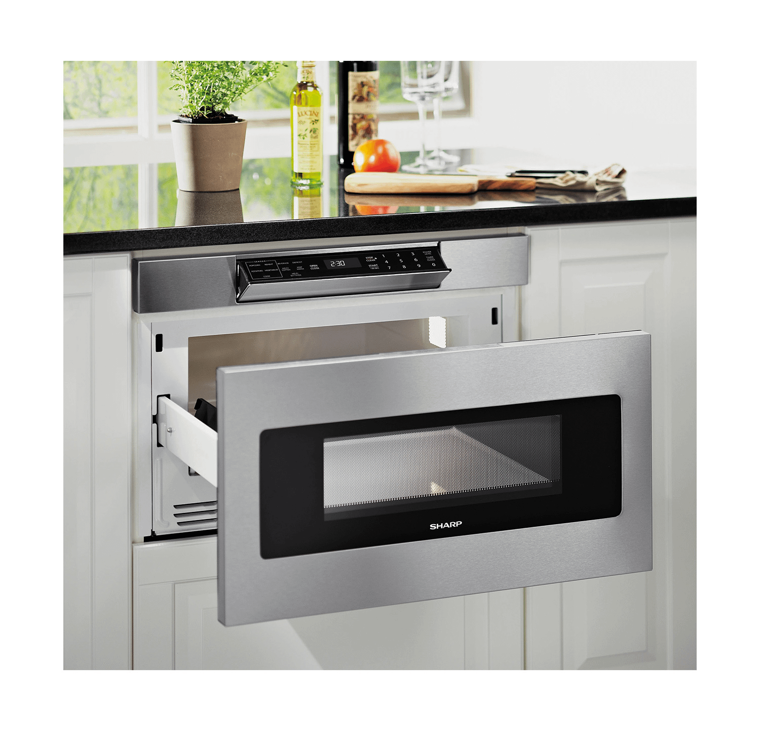 Focus on the design elements you prefer by removing the microwave from sightlines and enabling more design versatility. The SMD3070AS 30 inch Microwave Drawer offers flexible placement options below an island, peninsula or standard cabinetry, or can be installed below your wall oven. This Sharp Microwave Drawer allows you to showcase your design savvy and create a kitchen that flows with your lifestyle.