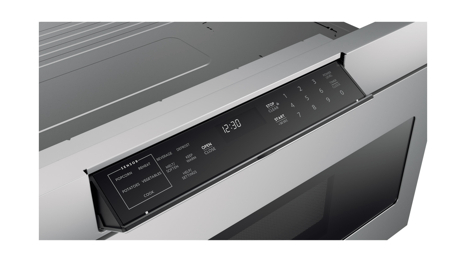 The SMD3070AS Microwave Drawer Oven boasts an easy-to-read display that disappears until you need it. The concealed control panel opens at a 45-degree angle, so it s easy to read and operate.