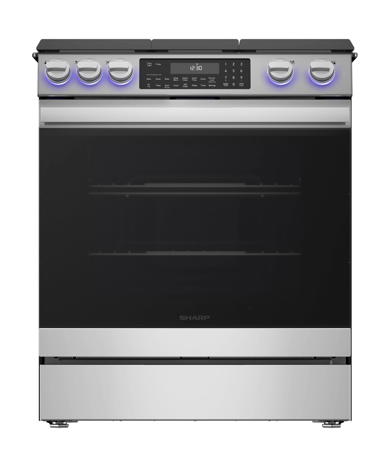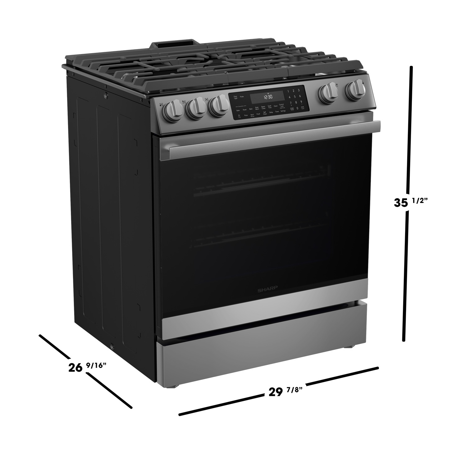 The Sharp® SSG3065JS Slide-In Convection Gas Range is built for your dream kitchen. The sleek, modern edge-to-edge black glass with stainless steel finish complements your style. And you can keep your countertops clear of single-serving appliances because the SSG3065JS is also a family-size air fryer!