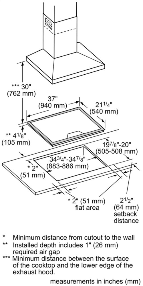 Minimum distance from rear wall (in) | 2'' |
