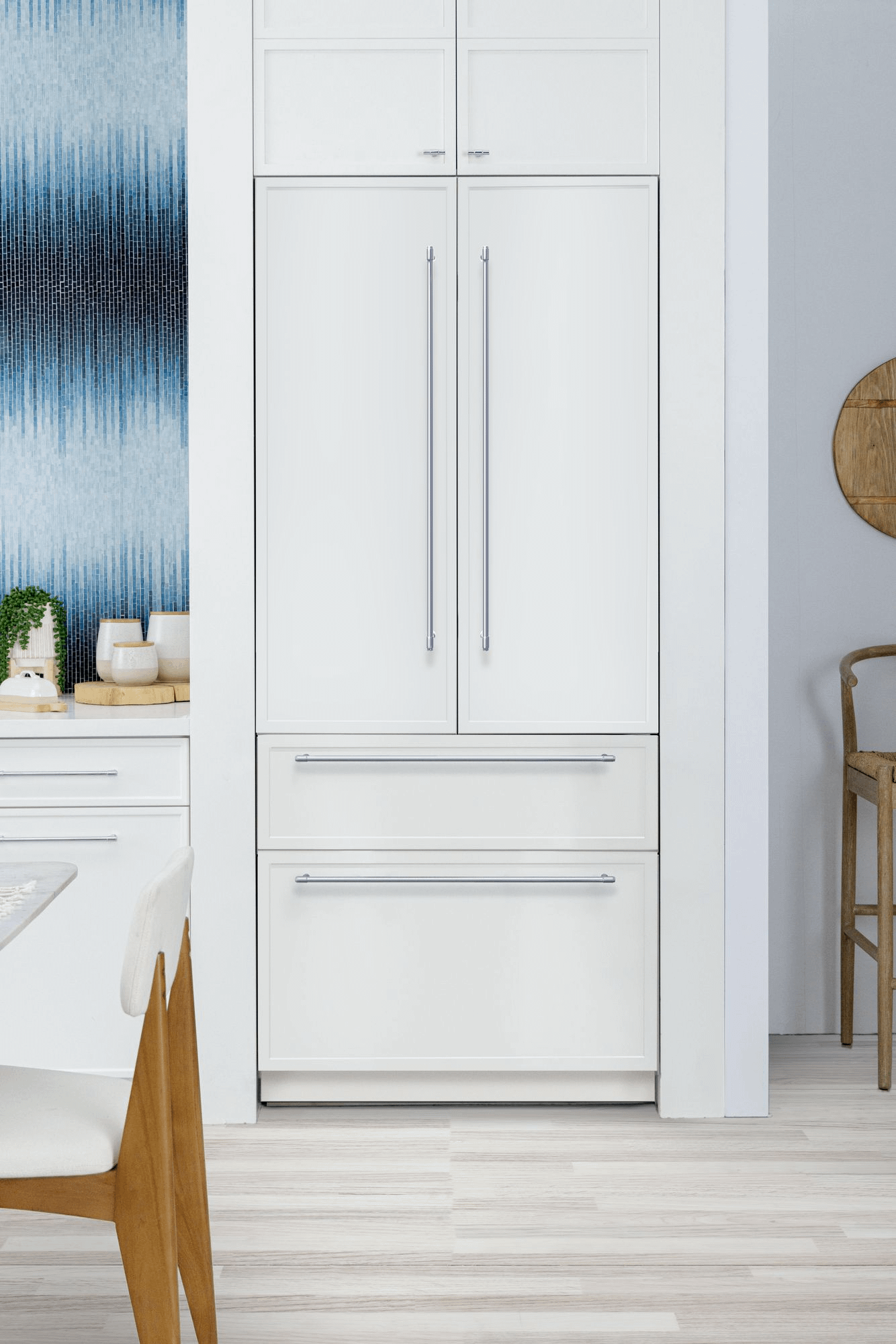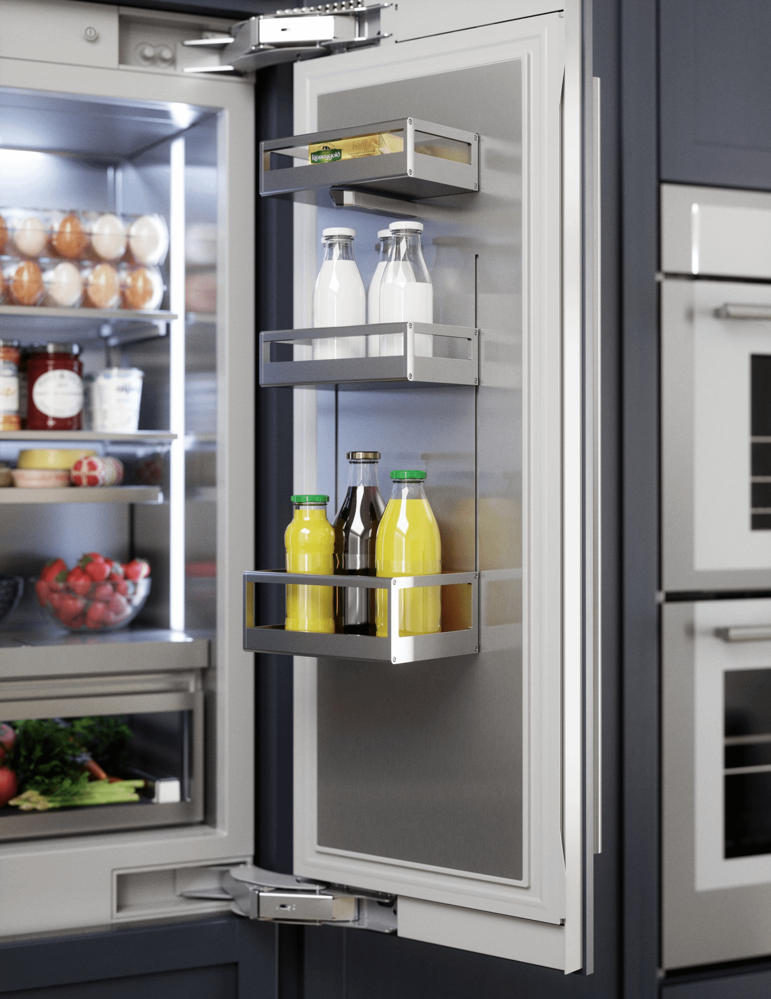- The Freedom(R) Hinge can be installed fully-flush, allowing for custom panels to match the surrounding cabinetry for completely seamless integration.