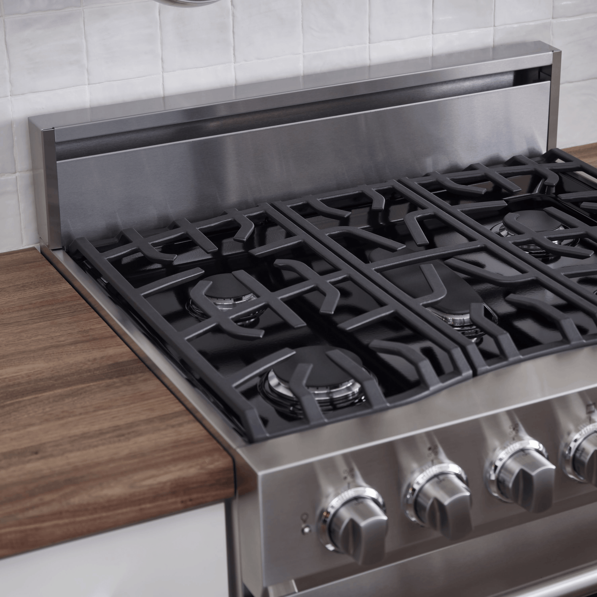 - Grate design provides continuous cooking surface for easy movement of pots and pans