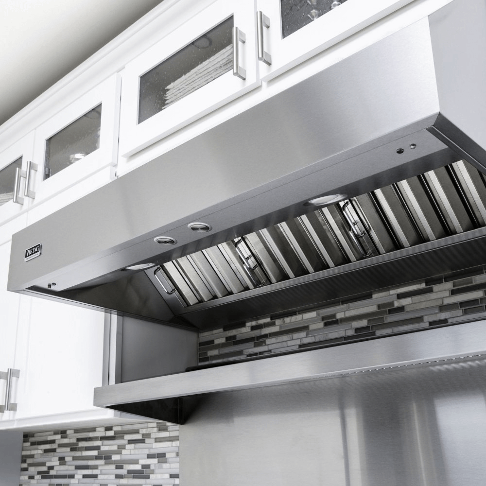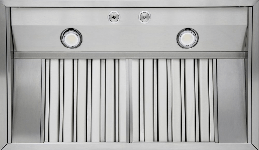 - Low-profile filter system reduces interior hood space, leaving less surface to clean
