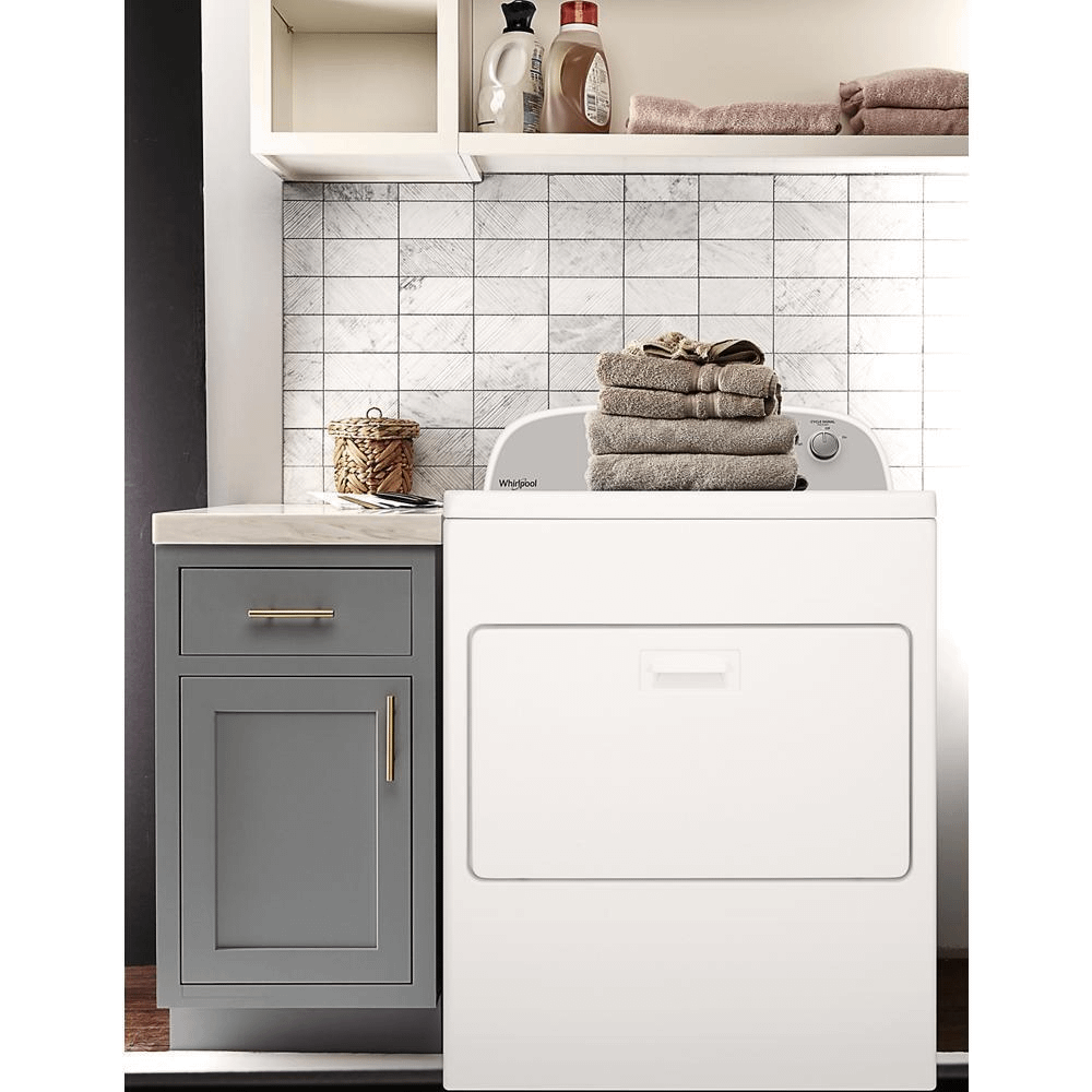 Care for the whole family's fabrics with this large capacity top load dryer. Choose between the AutoDry™ system, which helps prevent overdrying, or Timed Dry, which lets you manually control your drying schedule. Help keep wrinkles from setting in with the Wrinkle Shield™ option and easily transfer loads from the washer to this automatic dryer with a wide-opening hamper door.