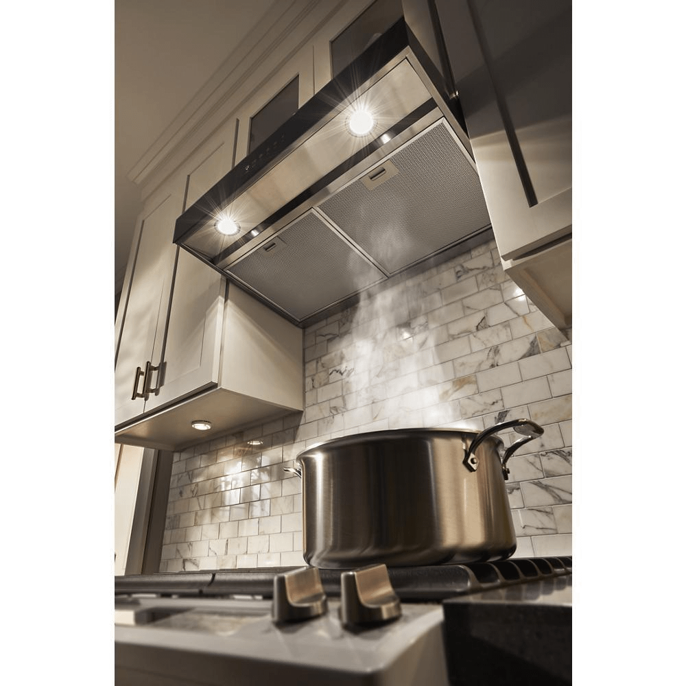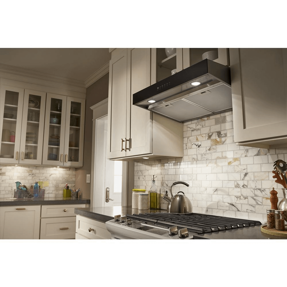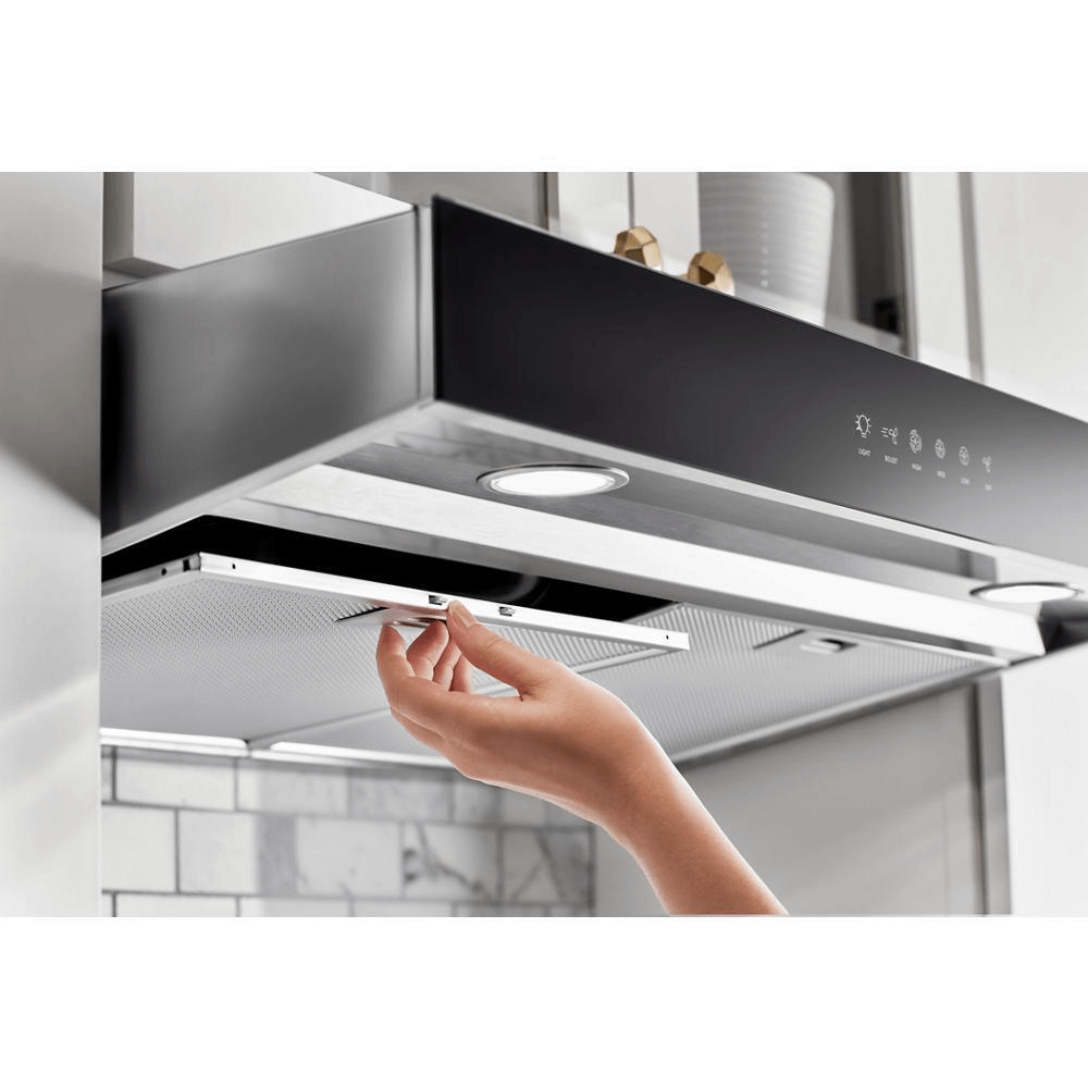 - Make cleanup easy with full-width grease filters that help keep the kitchen clean of unwanted grease and odors.