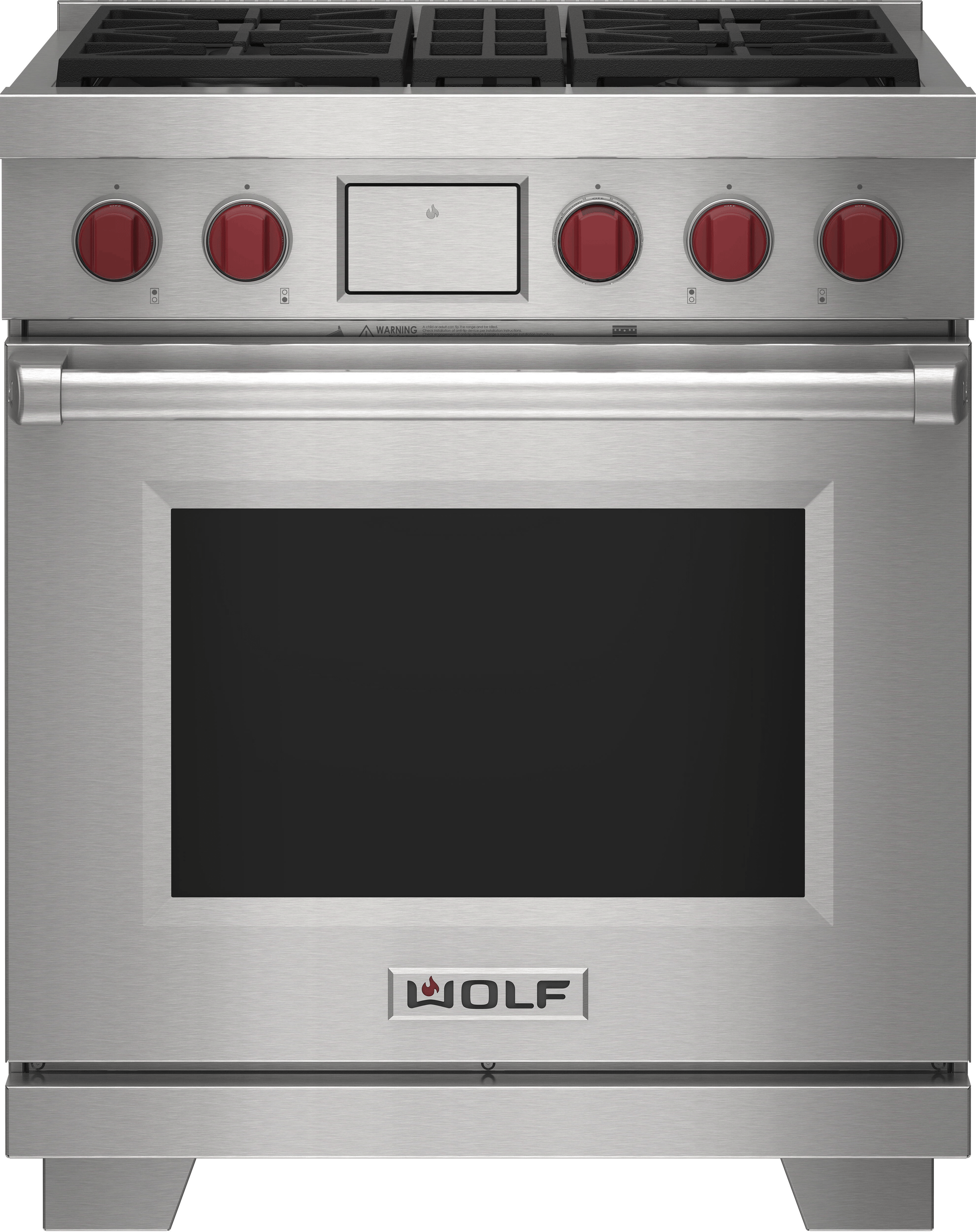 Make a statement with your choice of door colors and finishes for your Wolf Dual Fuel Range-classic stainless or new powder-coated black or white.