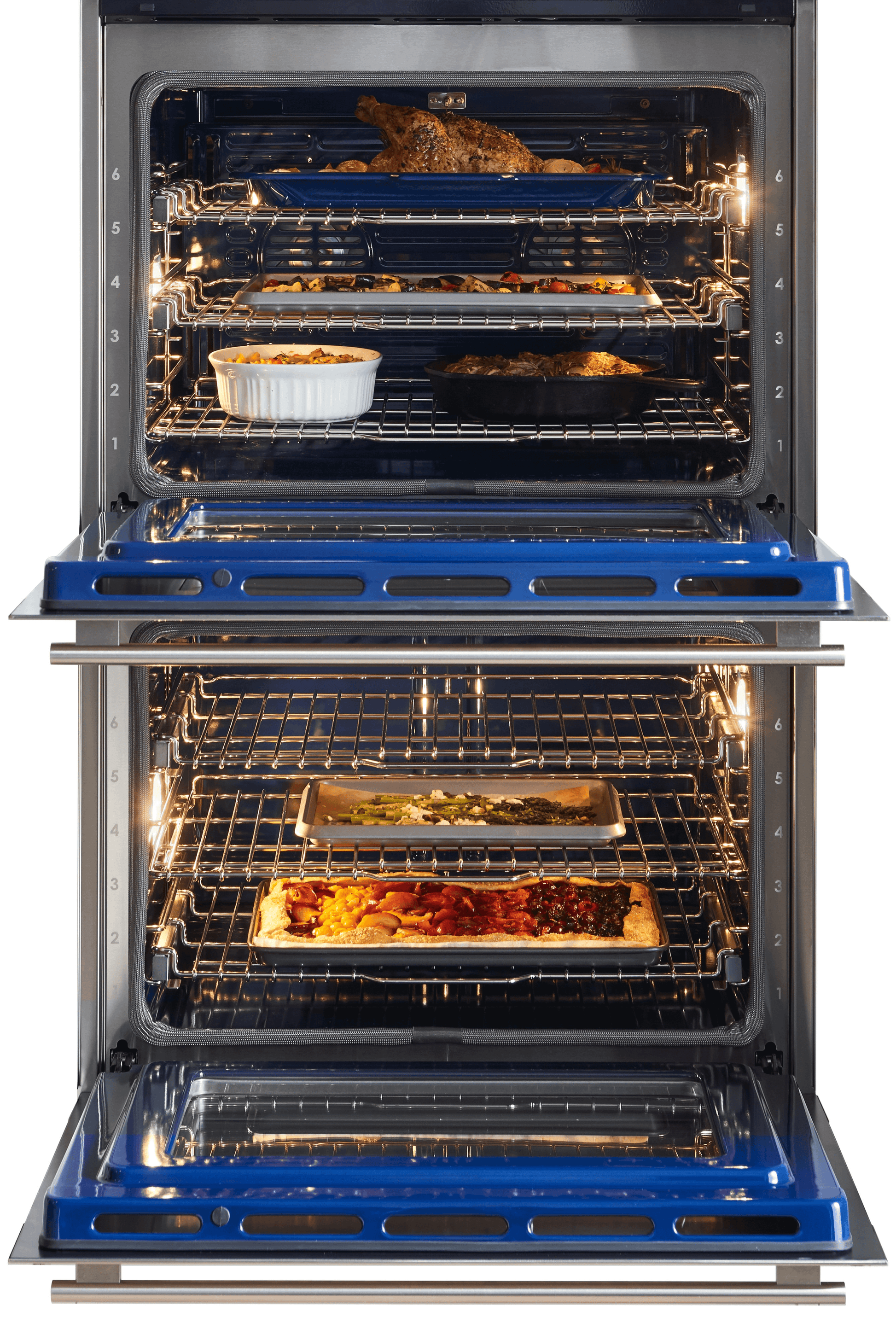Wolf s dual convection system-featured in the upper oven cavity-provides reliably even heat, reduces hot and cold spots, and enables consistent multi-rack cooking