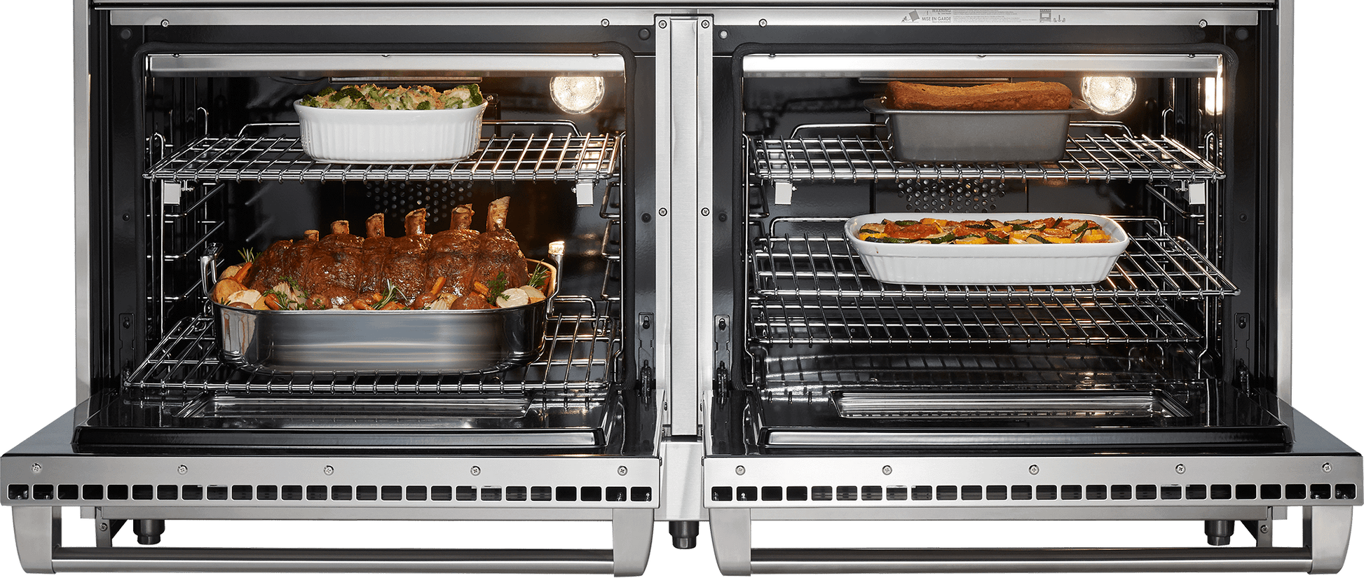 Convection fan circulates gas heat within the large capacity oven to eliminate "cold spots" and ensure more consistent, more delicious results - even when using multiple racks at once.